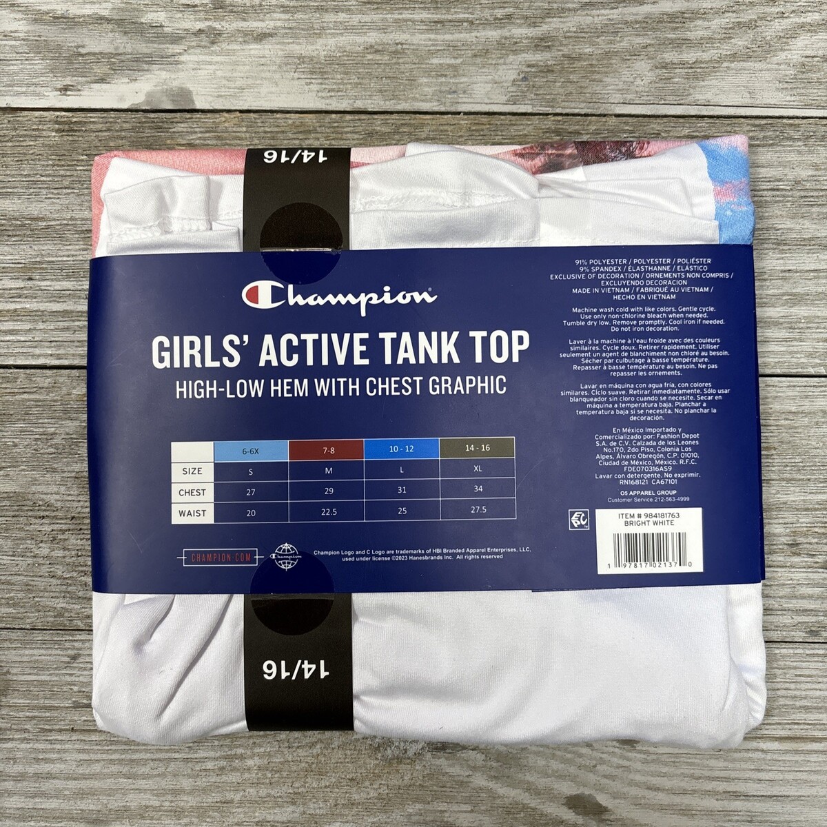 Champion Active Tank Top Girls Sz 14/16 White With Chest Graphic