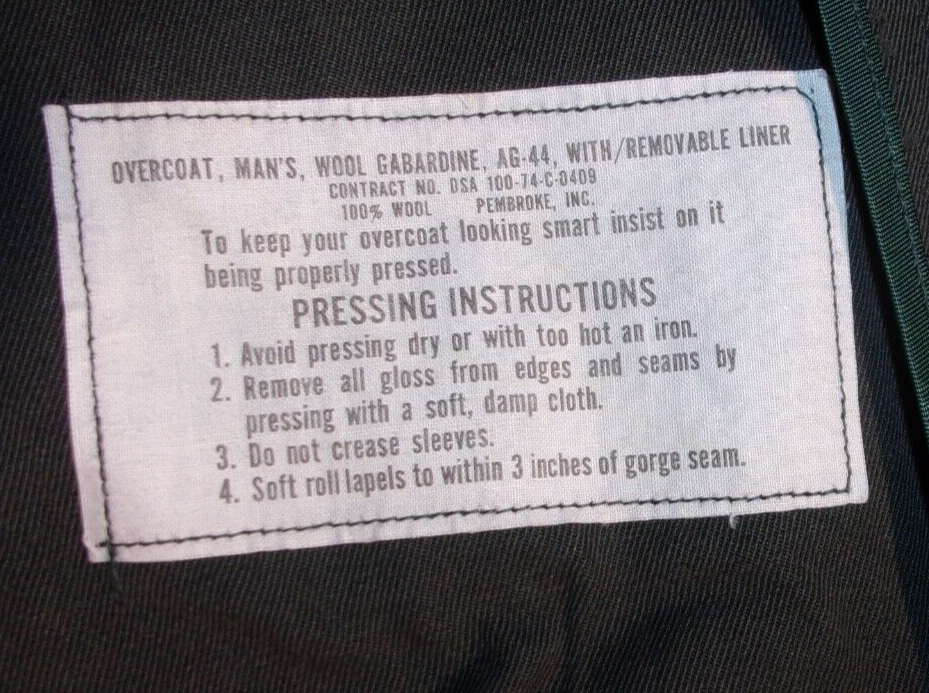 1974 USGI OVERCOAT MANS WOOL GABARDINE AG44 100% WOOL W/ LINER COAT JACKET