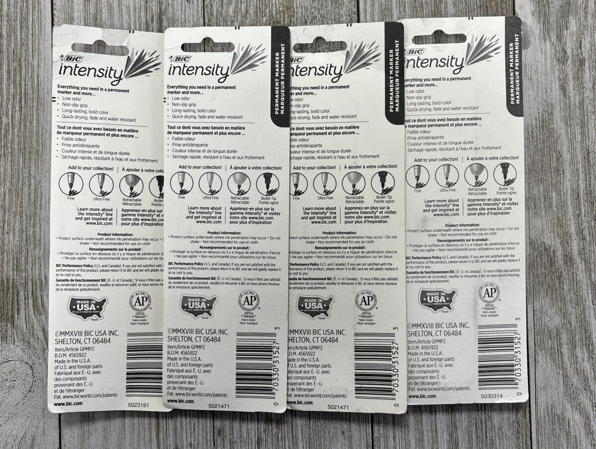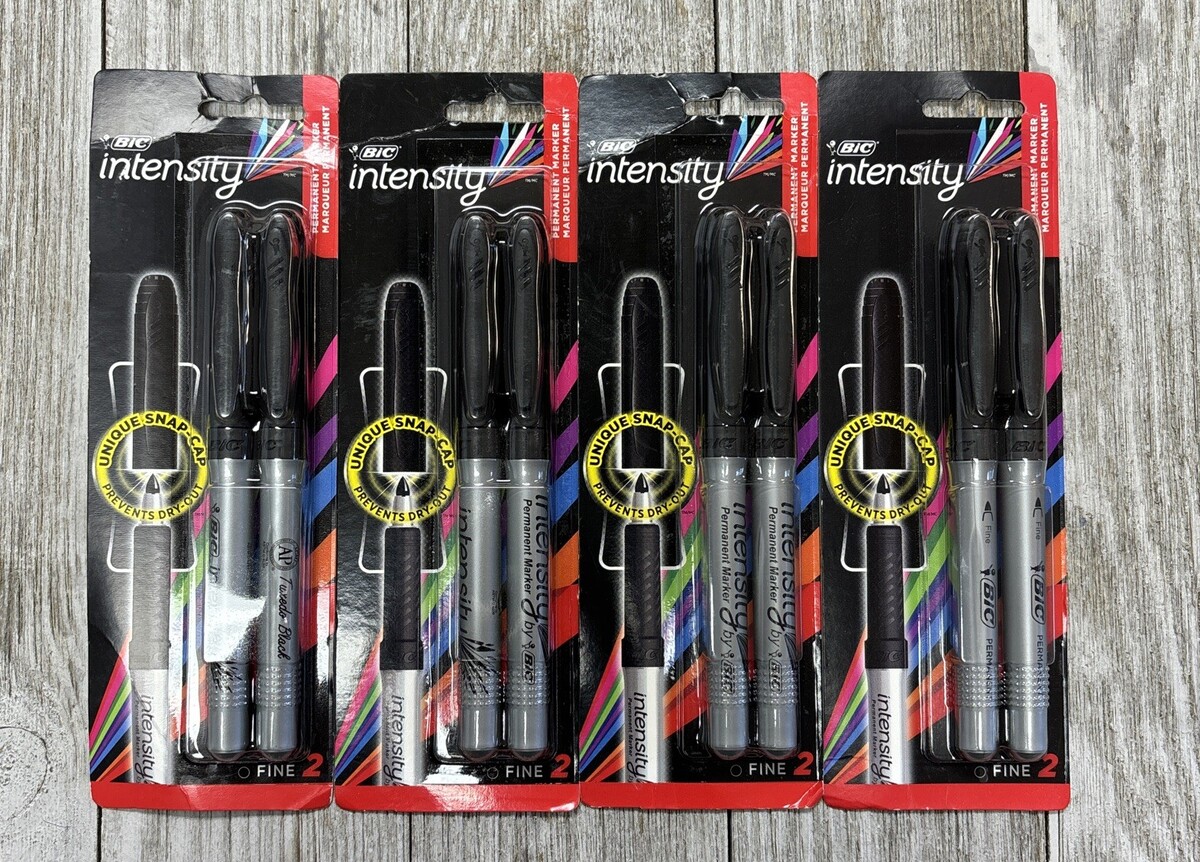 BIC Intensity Permanent Marker, Black, Fine 4 Packs of 2 - New Sealed