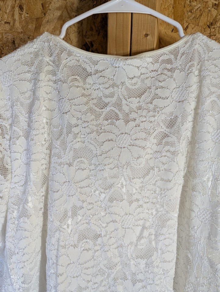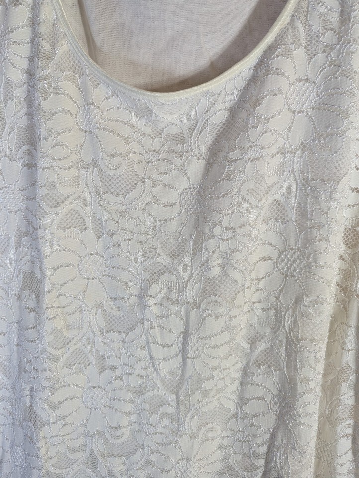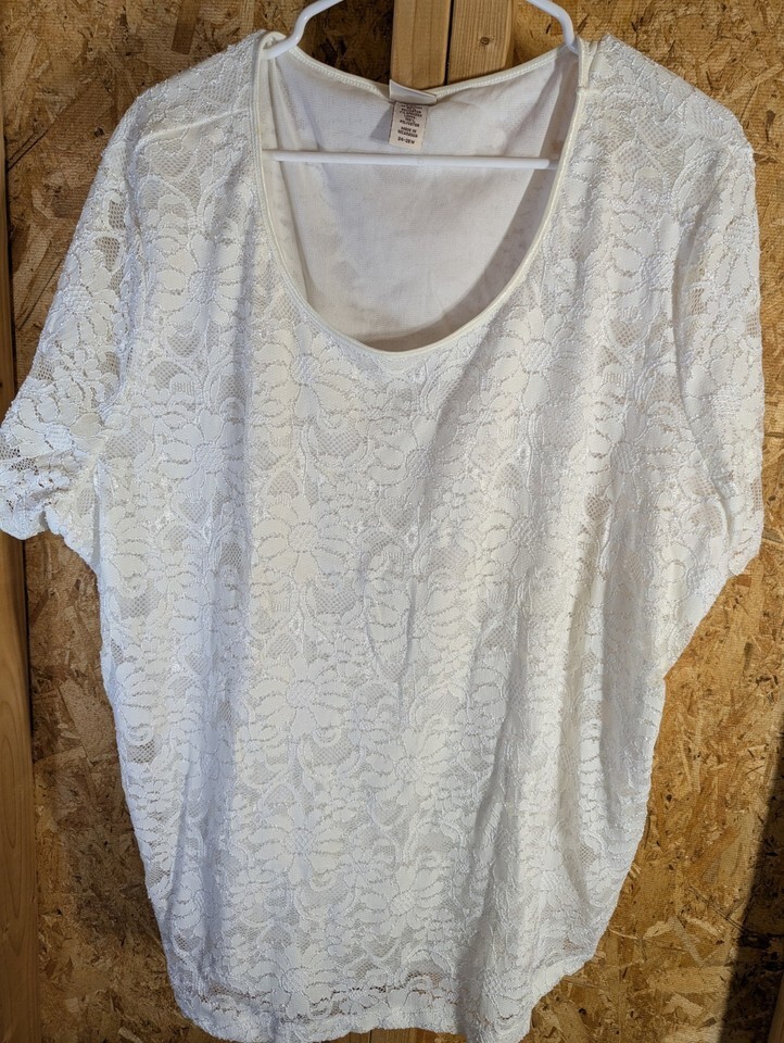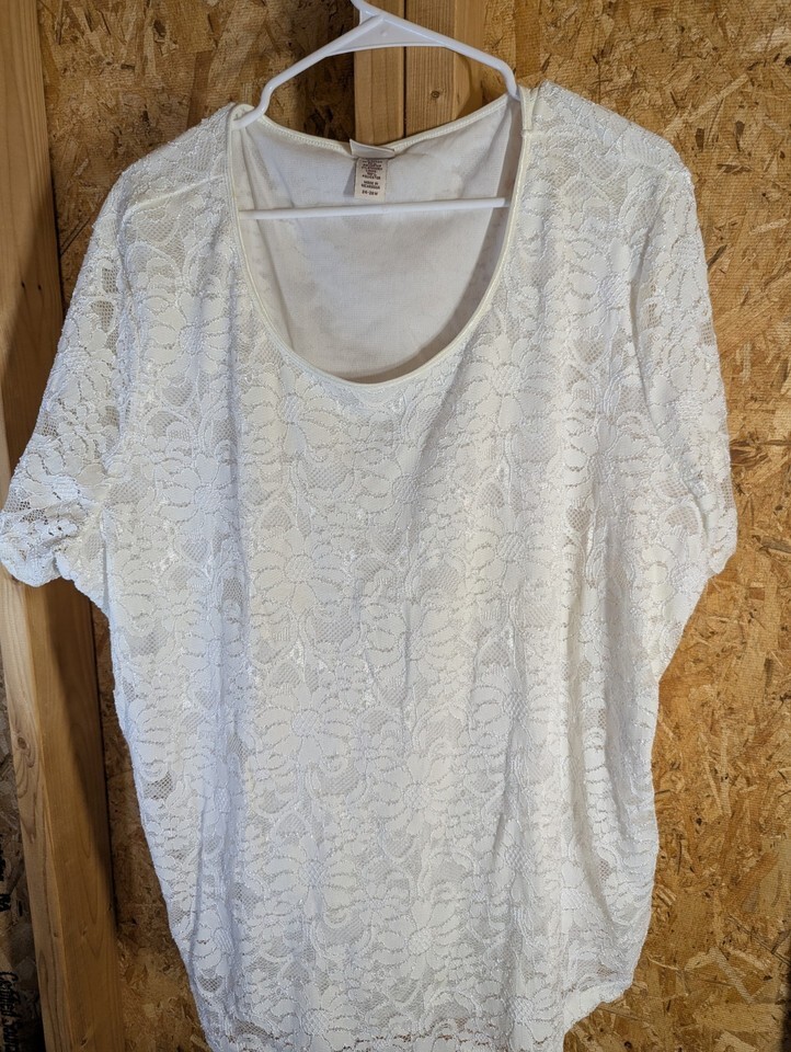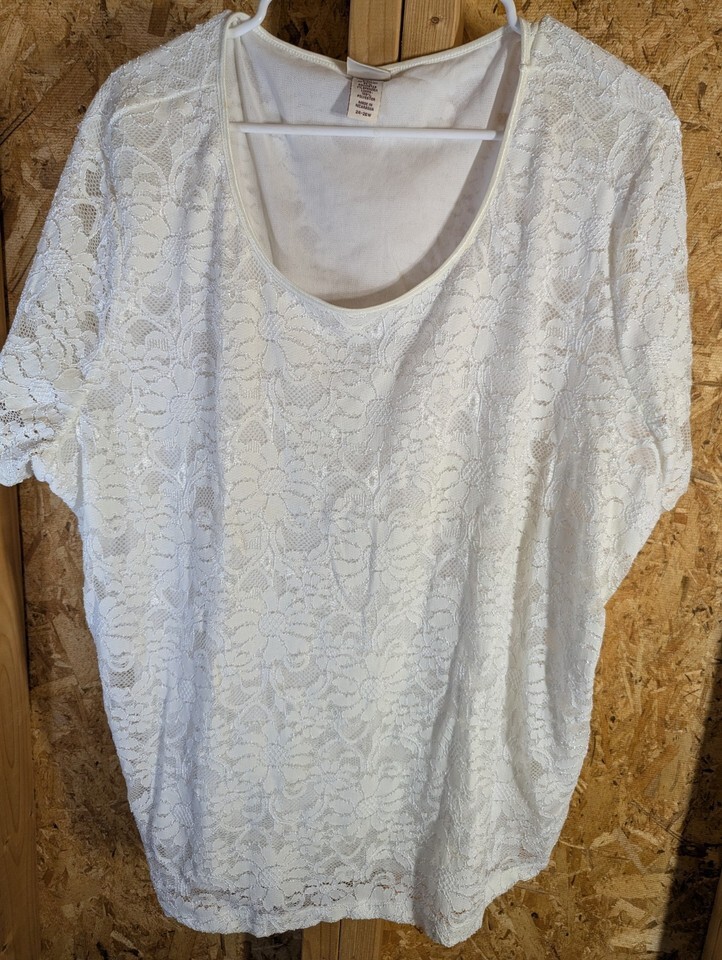 Covington 24-26W White Floral Lace Overlay Short Sleeve Blouse Top Scoop Neck