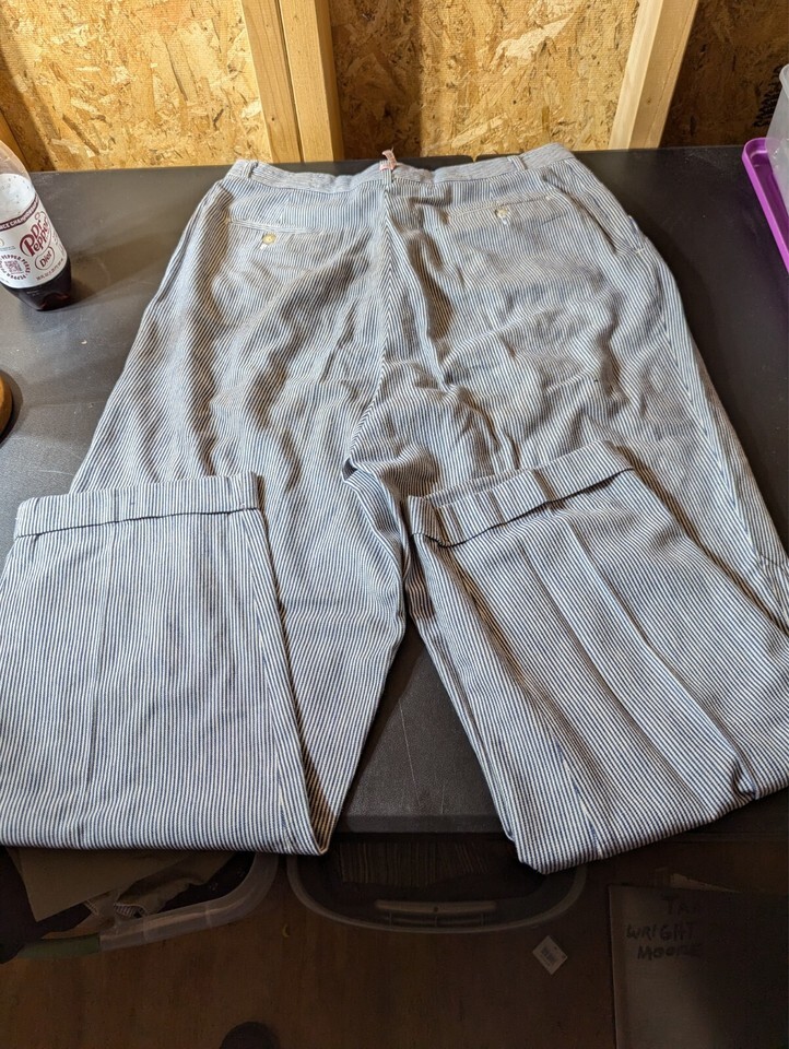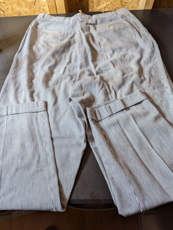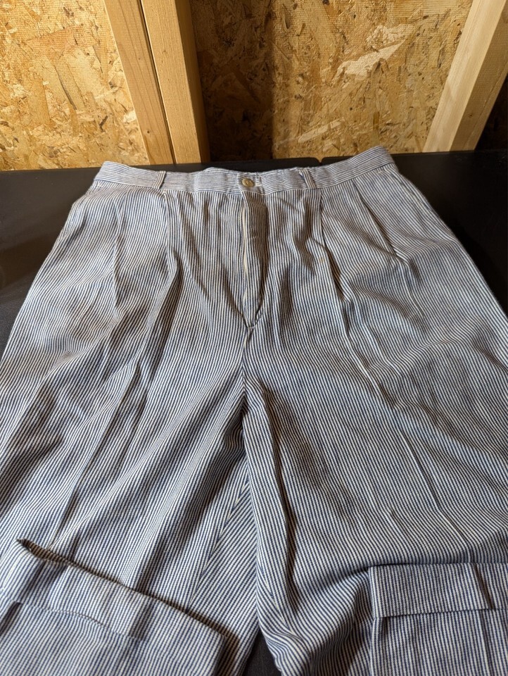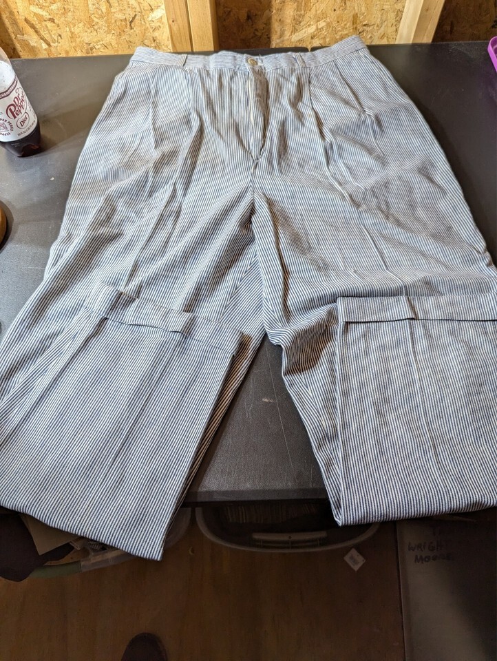 Elevate your wardrobe with these stylish black and white striped pants from Rebecca Thomas. Perfect for any occasion, these pants feature a pleated front, wide-leg style, and a comfortable waist size of 32 inches. The easy-care fabric and denim material make these pants machine washable, while the zip and button closure adds a touch of elegance.