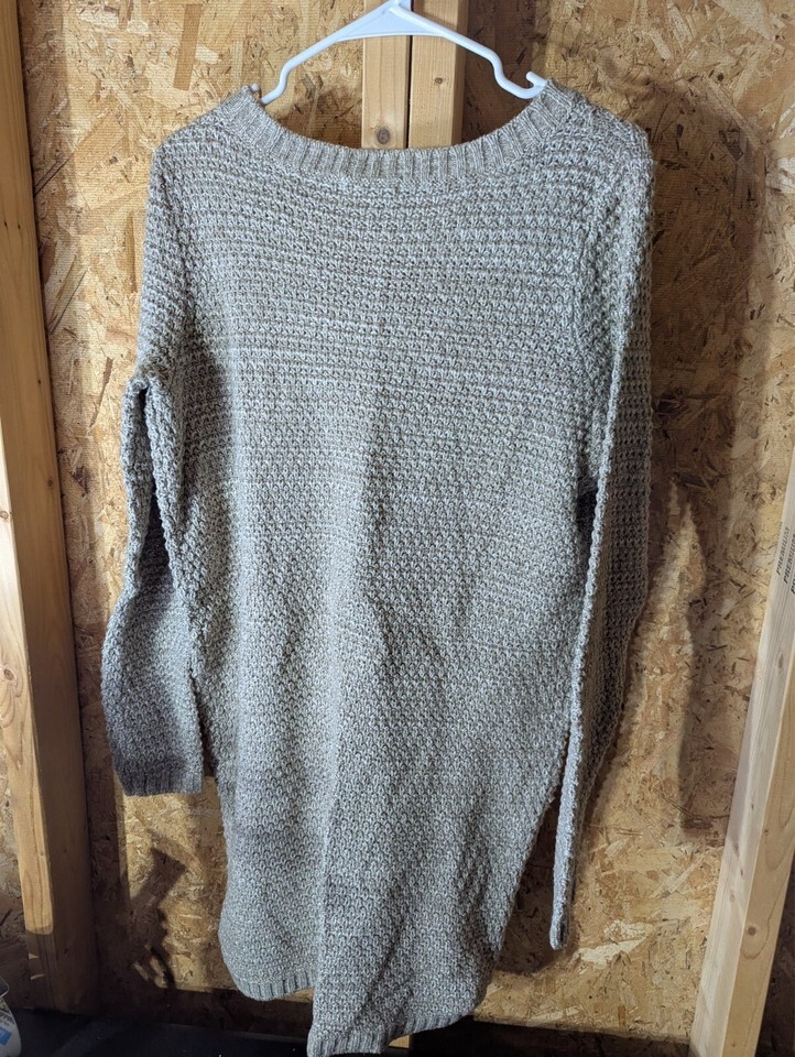 This is a men's Jack sweater in size L, featuring a solid beige color in a cable-knit style. Made of 100% acrylic material, this pullover sweater has long sleeves and a crew neck. It is recommended to hand wash only and is suitable for the winter, fall, and spring seasons.