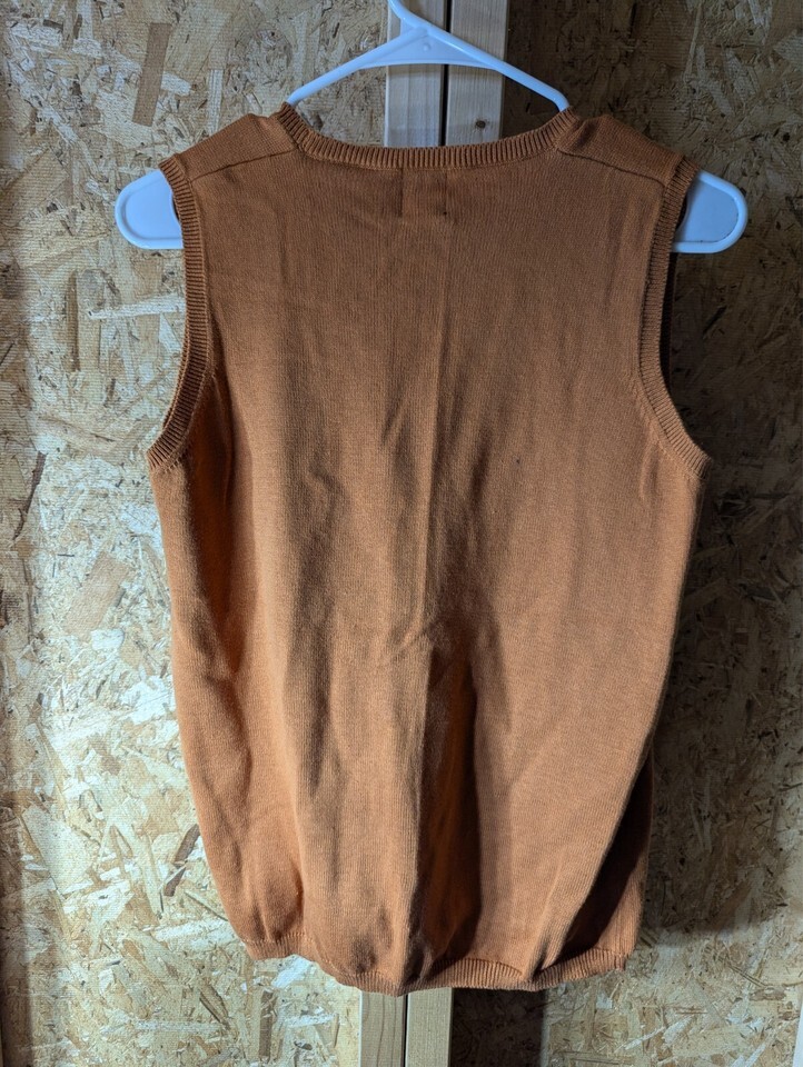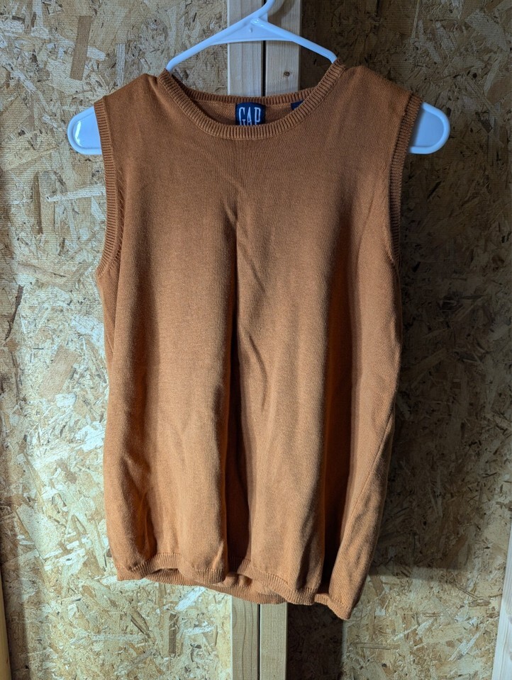 This orange tank top comes in a size M and is made of high-quality cotton material. The knit fabric type adds a comfortable and durable texture, ideal for summer, fall, or spring seasons. Designed by Gap, a well-known brand in the fashion industry, this basic style tank top is a great addition to any wardrobe.