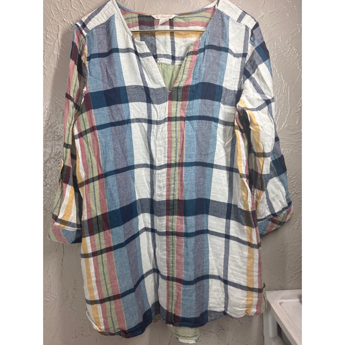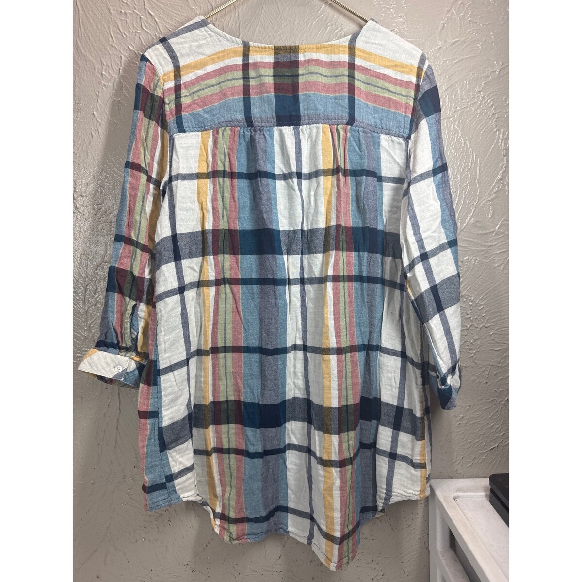 KC Khaki Co Womens Lined Plaid V Neck 3/4 Sleeve Tunic Blouse Size Large