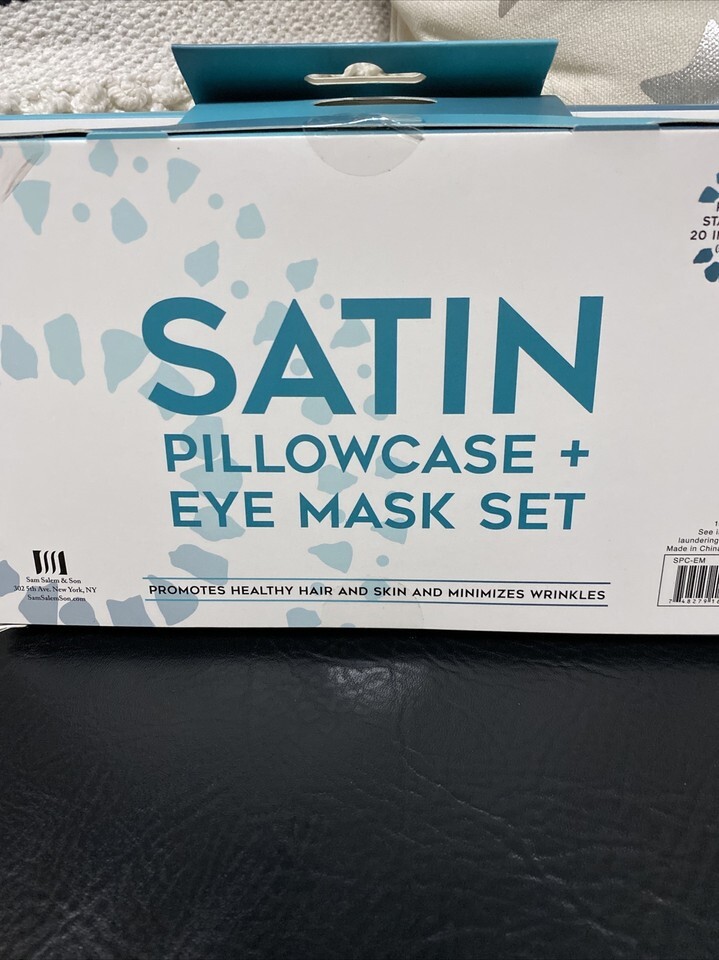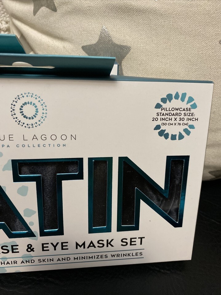 2 Satin Stand Pillowcase Set Blue Lagoon Eye Mask Hair Skin Prevents Wrinkles
