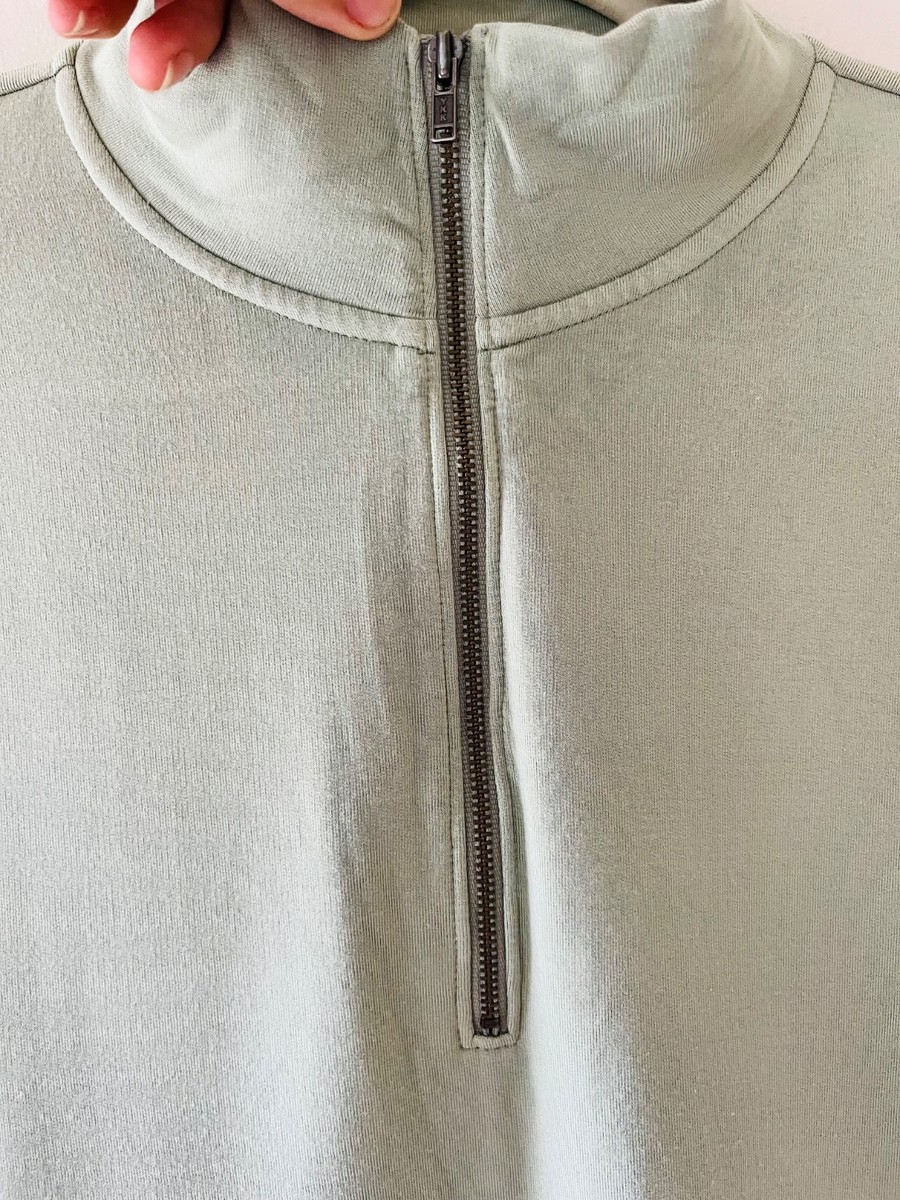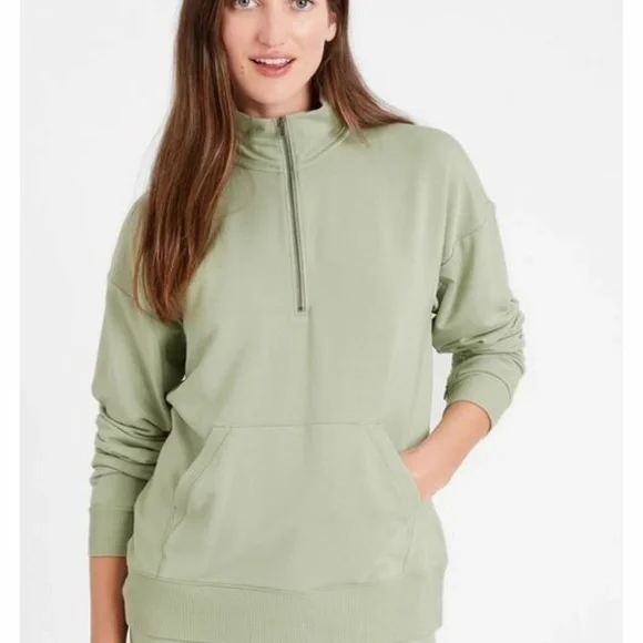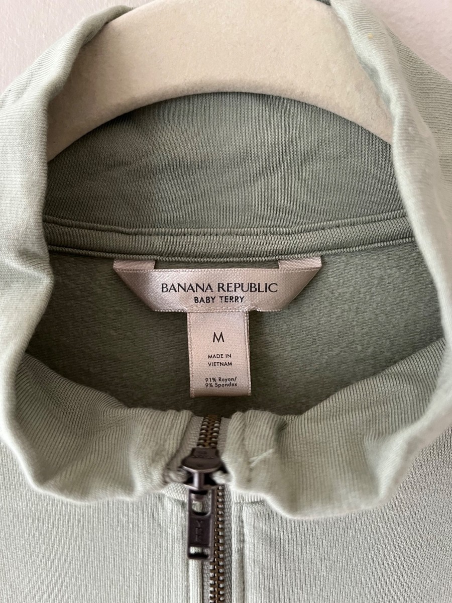 Banana Republic M Sage Baby Terry Zip Sweatshirt Fleece Pocket Sweater Stretch