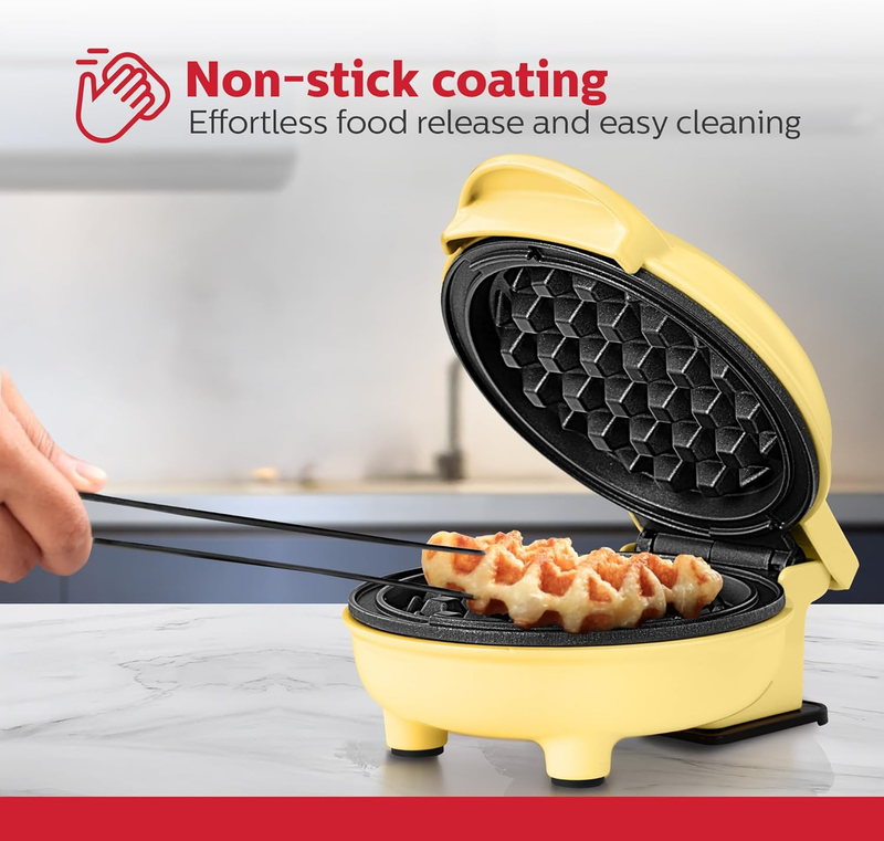 Fun and Fast Treats: Bakes a delicious waffle in minutes, making breakfast or snack time extra special.