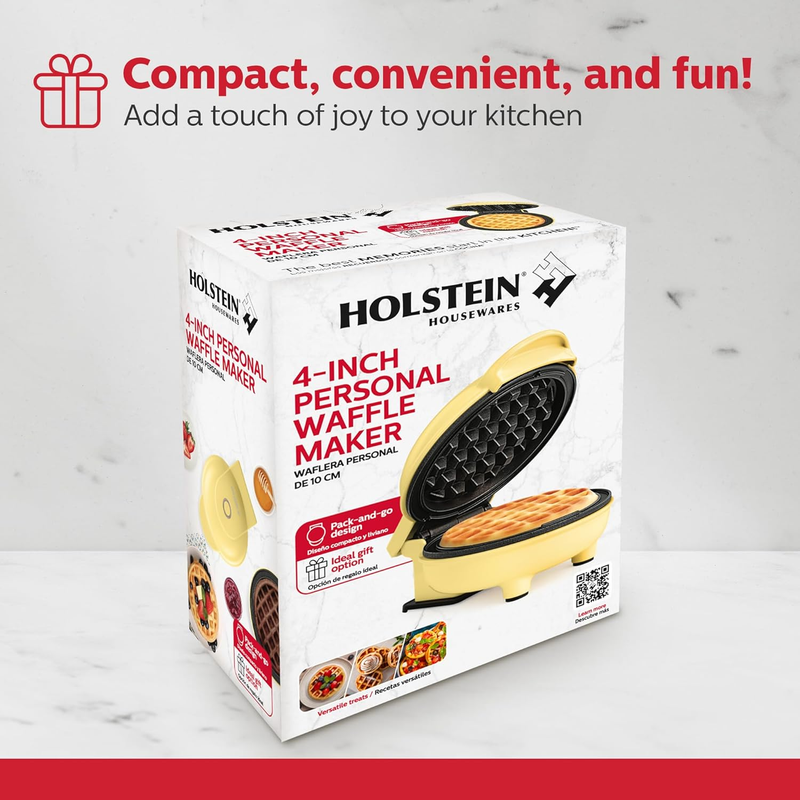 The Holstein Housewares personal waffle maker makes individual waffle, perfect for portion control - you won't have to worry about having made a waffle that is too big. With its non-stick coating, the waffle maker is very easy to clean, and its space-saving size makes it perfect for any kitchen.