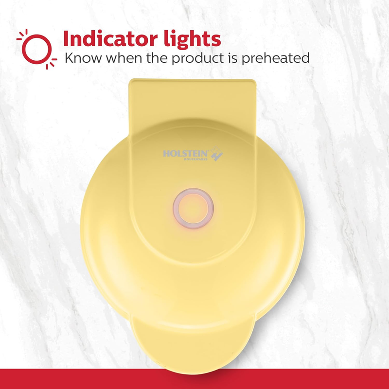 Personal/Mini Waffle Maker, Non-Stick Coating, Yellow - 4-Inch Waffles in Minute
