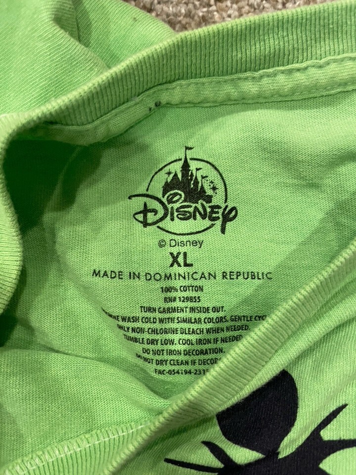 This Disney Nightmare Before Christmas t-shirt is a must-have for any fan of the beloved franchise. Featuring Jack Skellington in a green color scheme, this t-shirt is available in size XL for both men and women. Made with high-quality materials, this t-shirt is sure to last for years to come.
