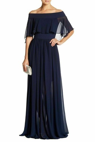 Dress the Population Violet Off the Shoulder Chiffon Gown Sz S Navy