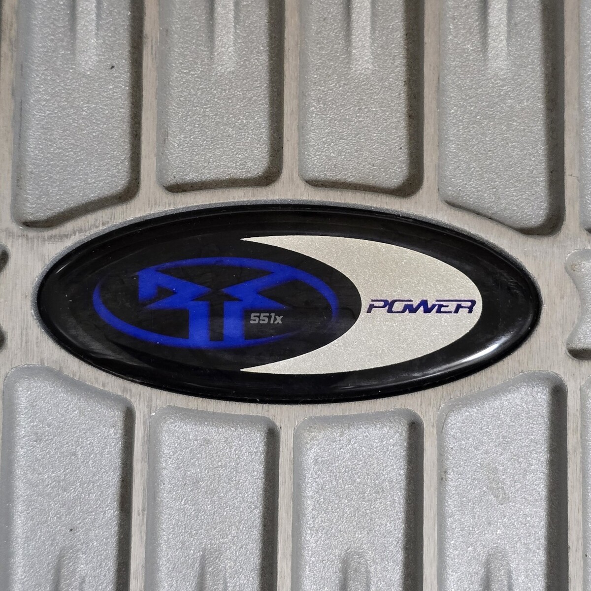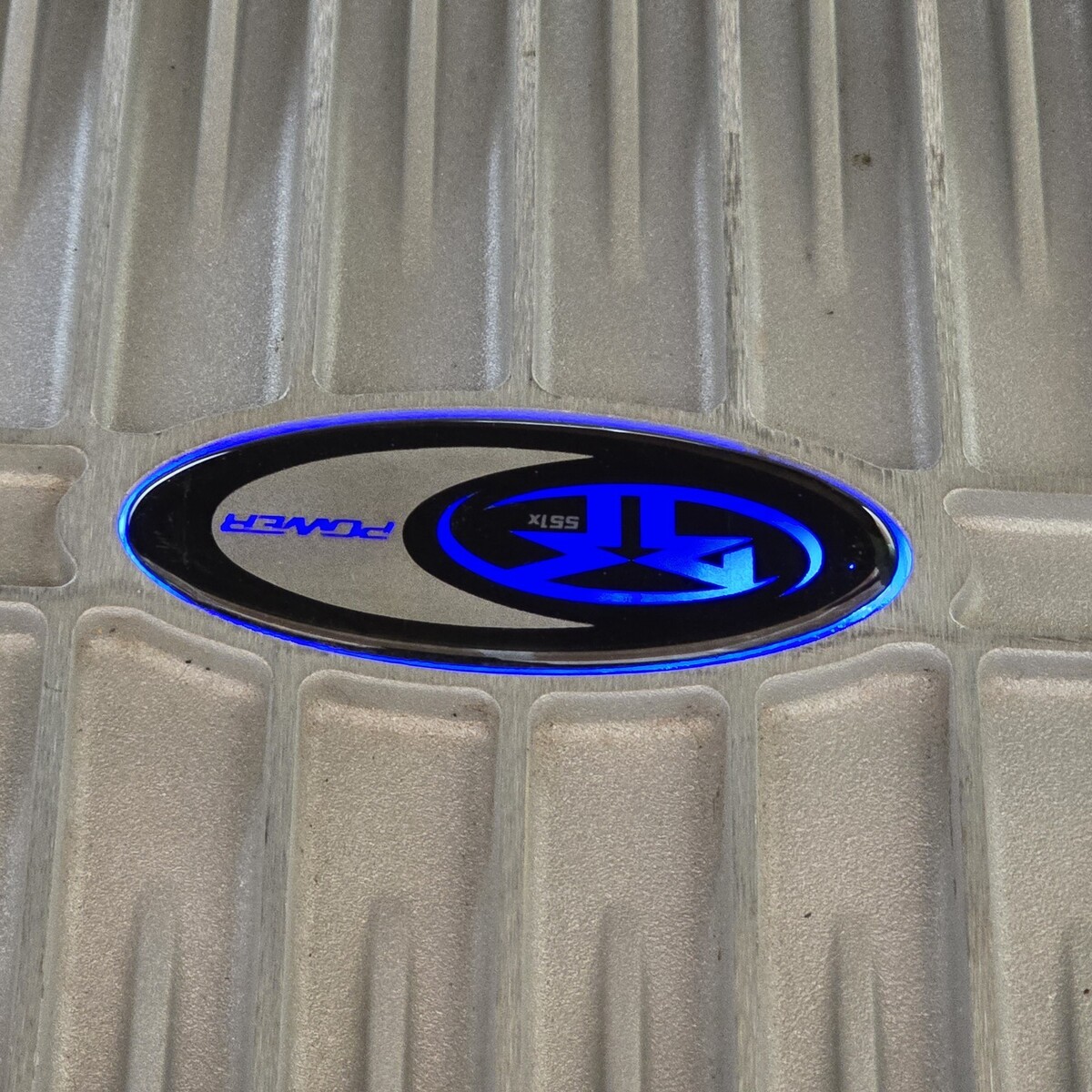Illuminated blue Rockford Fosgate logo badge