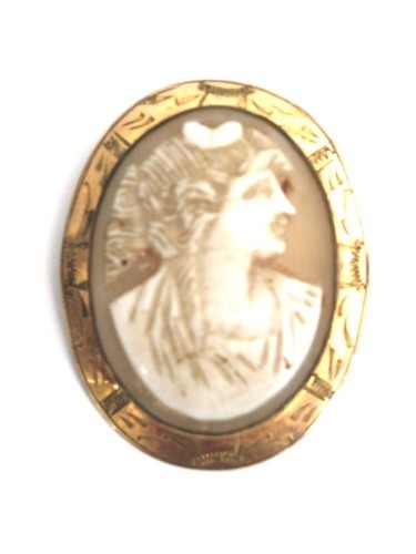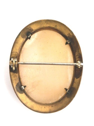 Victorian antique cameo with a pink shell woman's profile- very Italian. It is definitely gold, though I couldn't find a mark. At least filled. It measures 1 1/2" tall and is as found condition- in a jewelry box no one touched for a long time. I didn't try to clean it or anything. Its not cracked or anything, in very good condition.