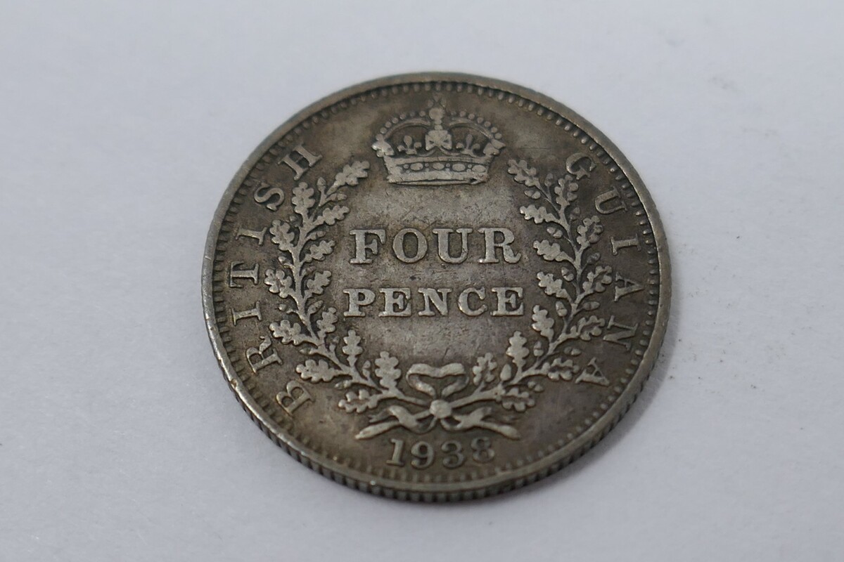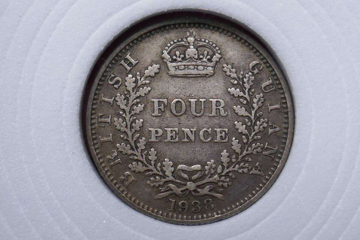 Guyana (British Guiana) 1938 George VI Silver 4 Pence Coin