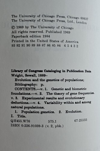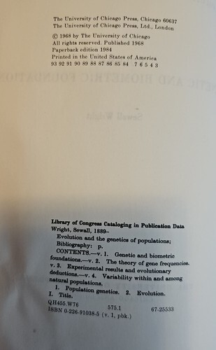 UP FOR SALE: Evolution and the Genetics of Populations Vol 2 The theory of Gene Frequencies by Sewall Wright