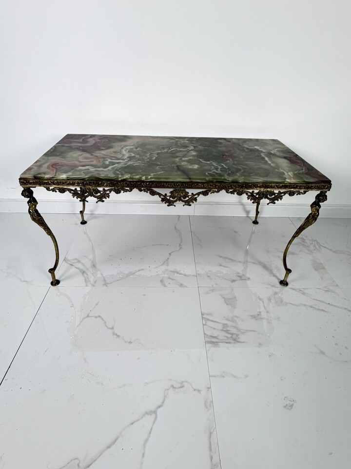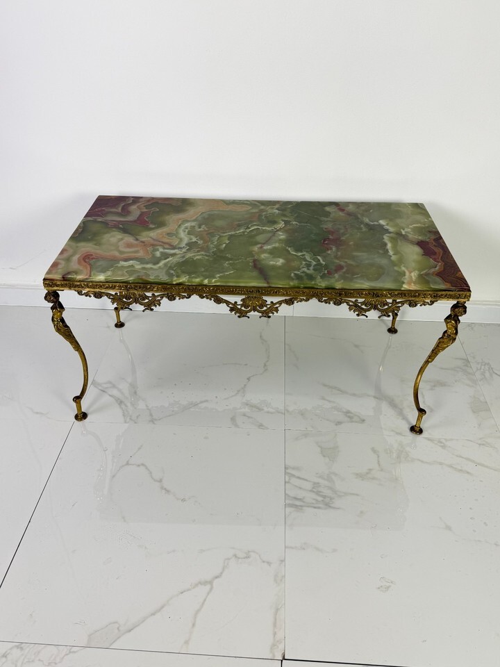 Tavolino da caffe in onice e base in ottone, Italia, anni '50.