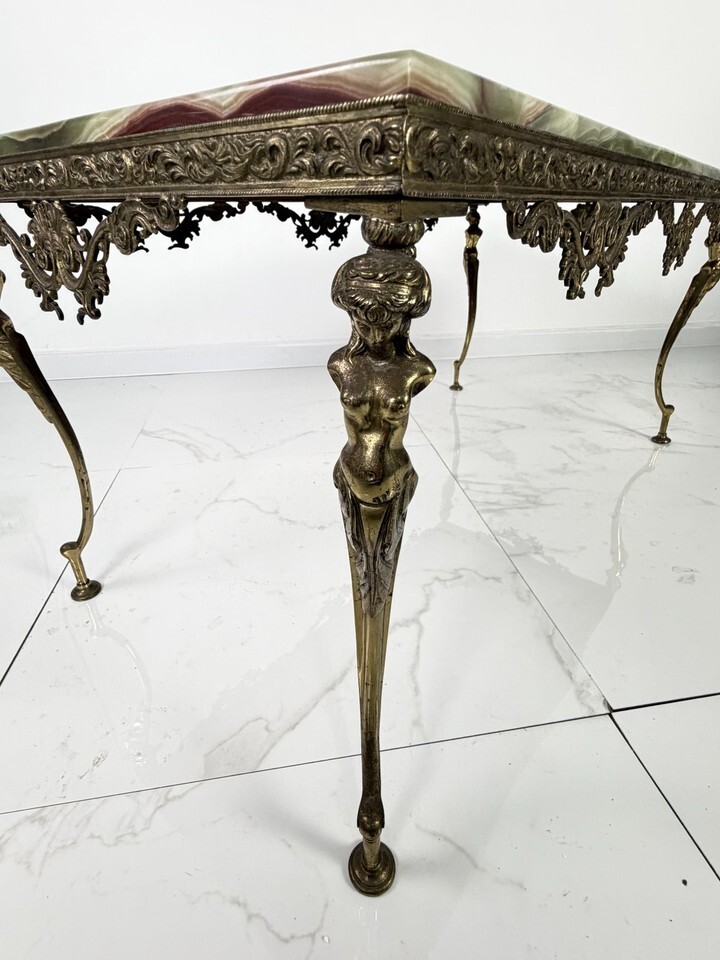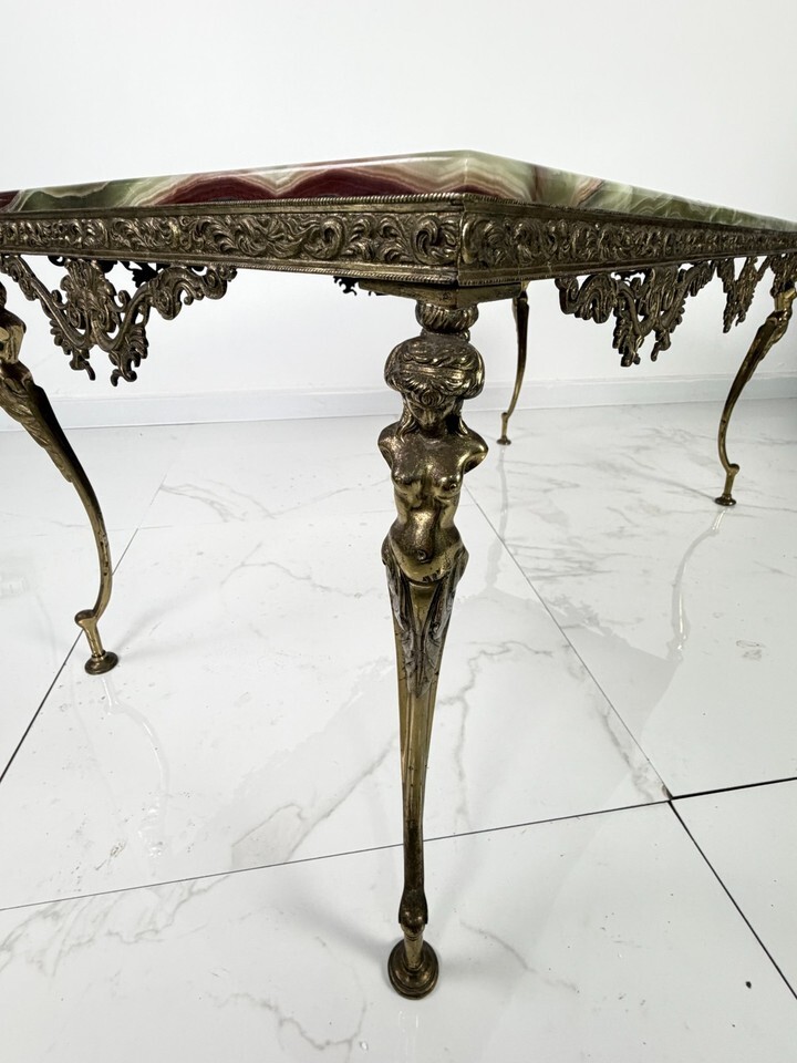 Tavolino da caffe Mid-century in onice con base in ottone, anni '50