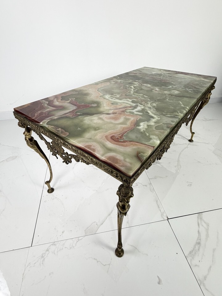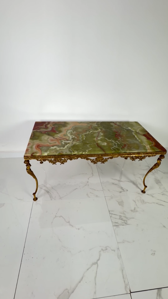 Onyx Coffee Table and Brass Base, Italy, 1950s- show original title Original...