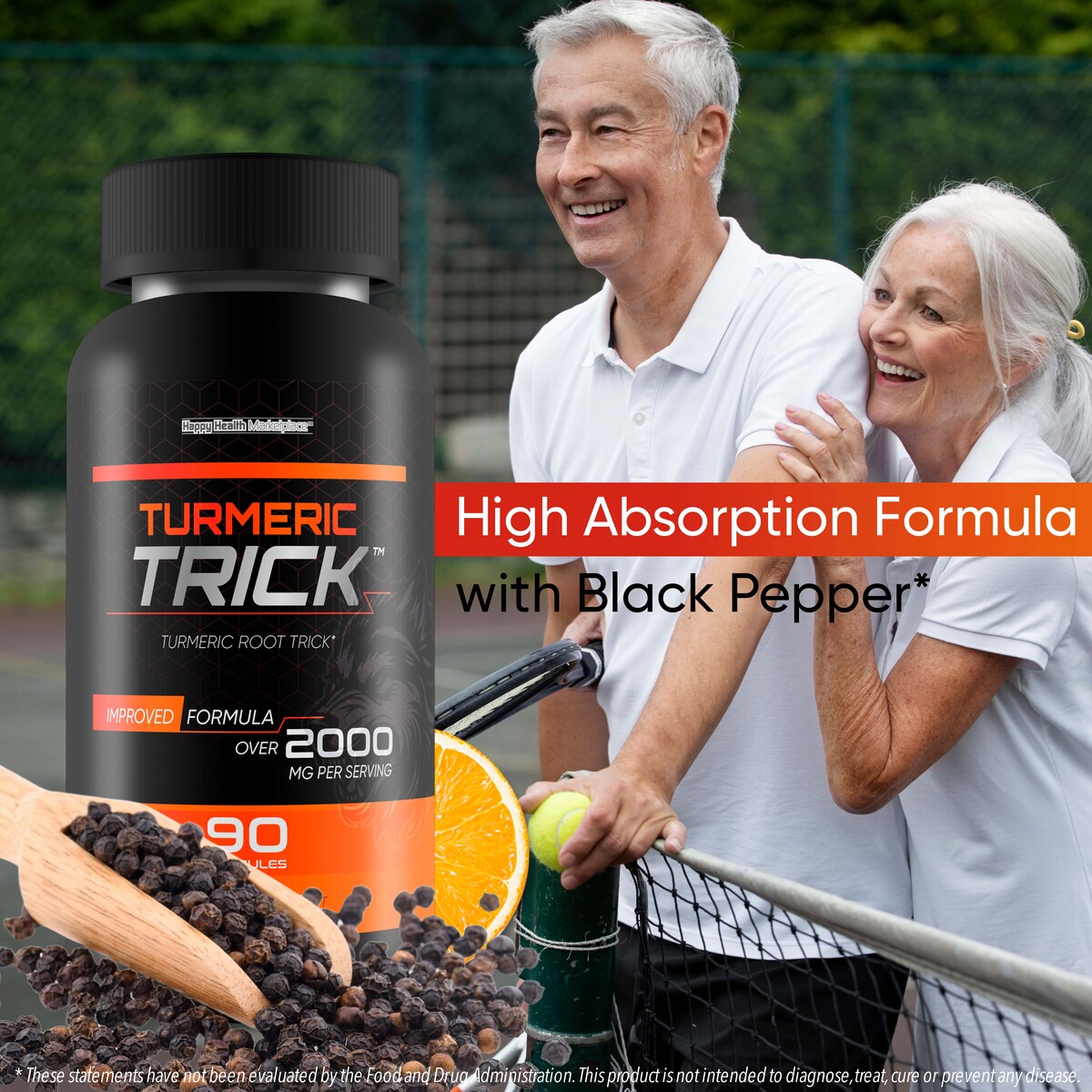 Turmeric Trick - with Vitamin D and Zinc for Men - Our Best Turmeric Curcumin Supplement for Men - Enriched with Black Pepper - Turmeric African Root Trick - Mens Health Vitamin D