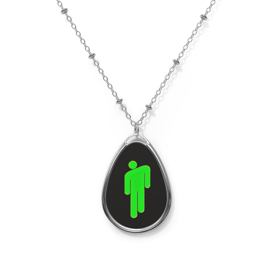 The "Billie Eilish Blohsh Oval Necklace Blue" is a fashion jewelry piece. This necklace features an oval-shaped pendant in a vibrant blue color, adding a pop of color to any outfit. It is a stylish and eye-catching accessory that can be worn for various occasions, making it a versatile addition to any jewelry collection.