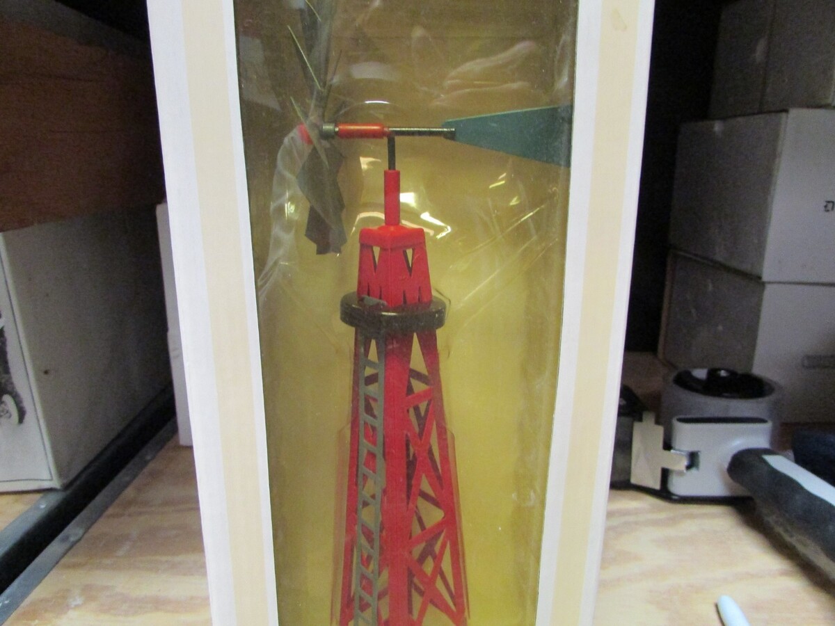 plastic window on box has some yellowing from light exposure, does not affect the color of the windmill