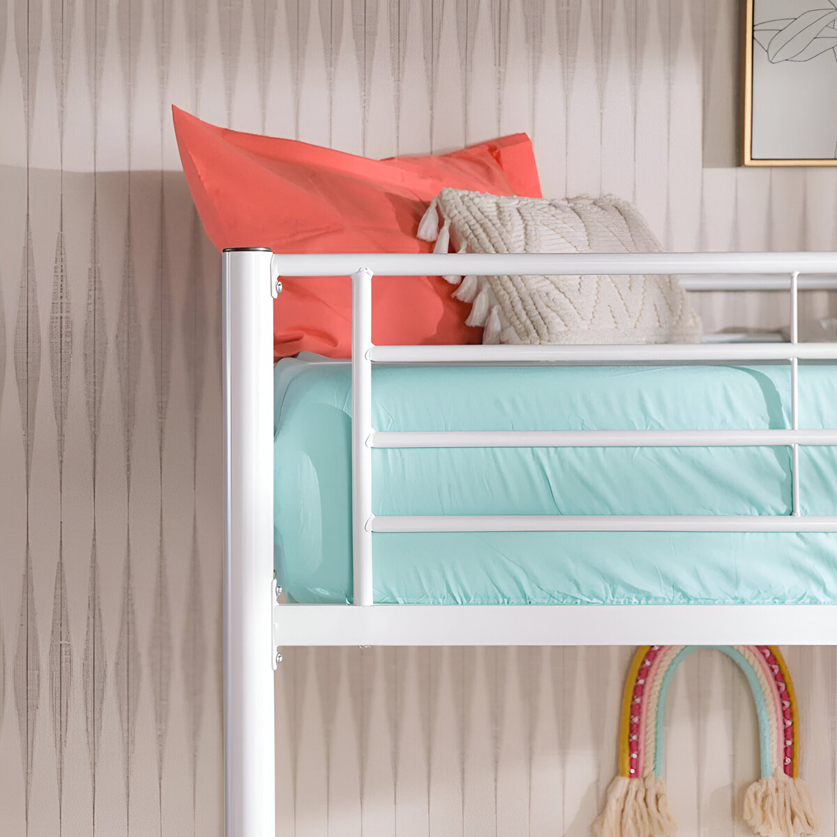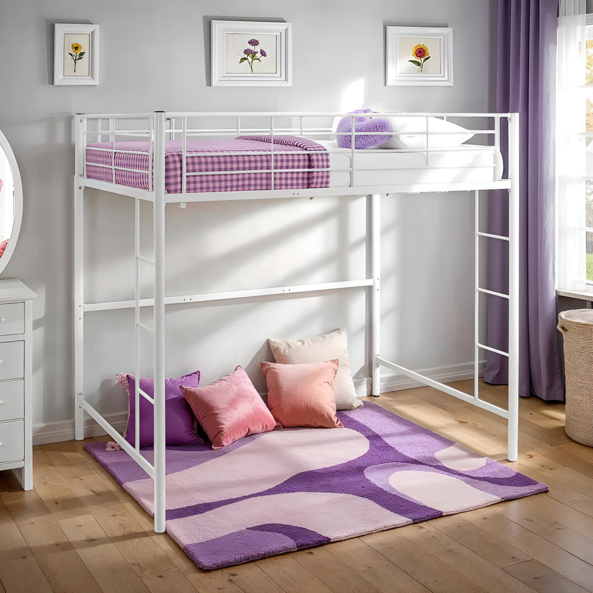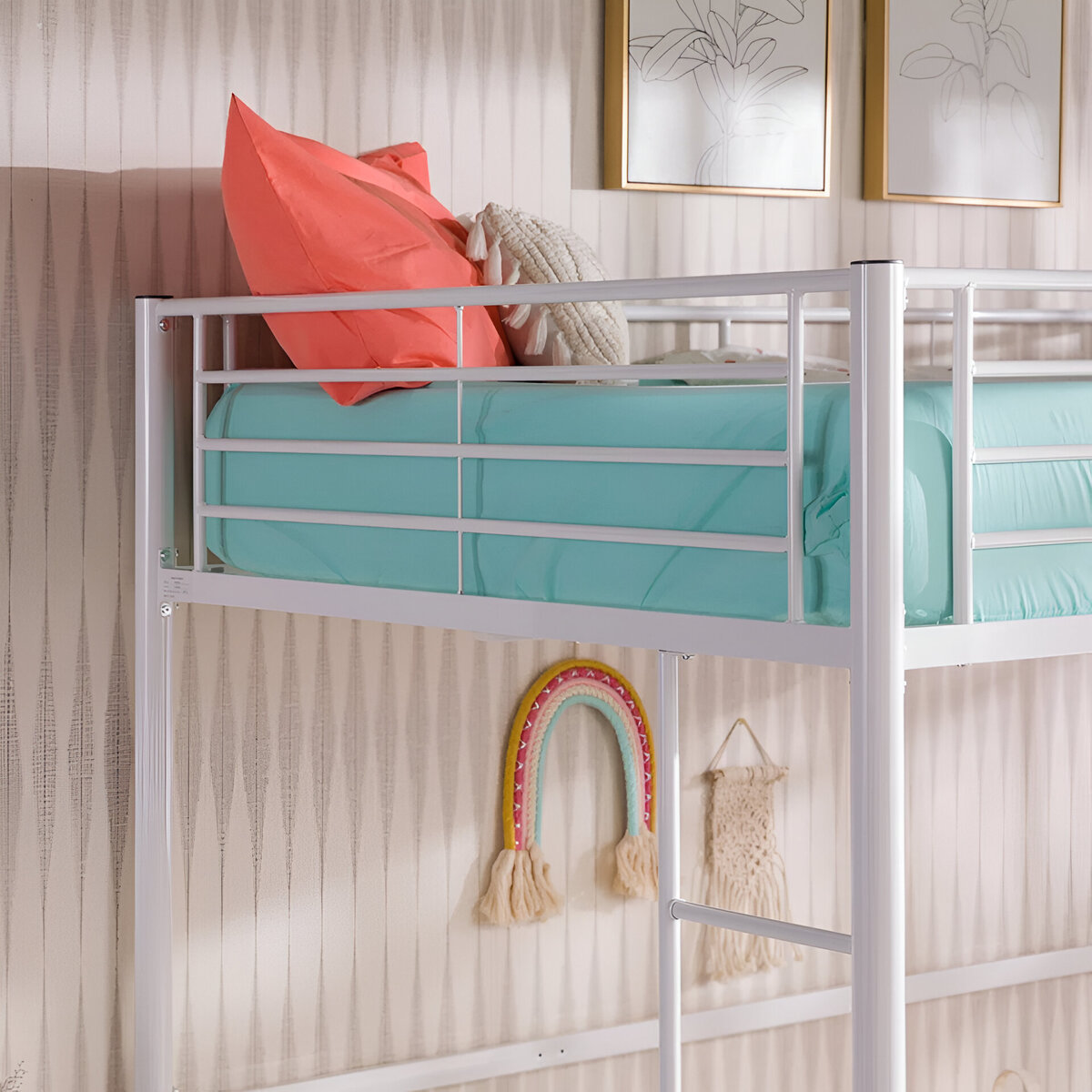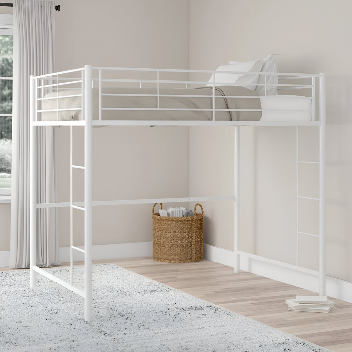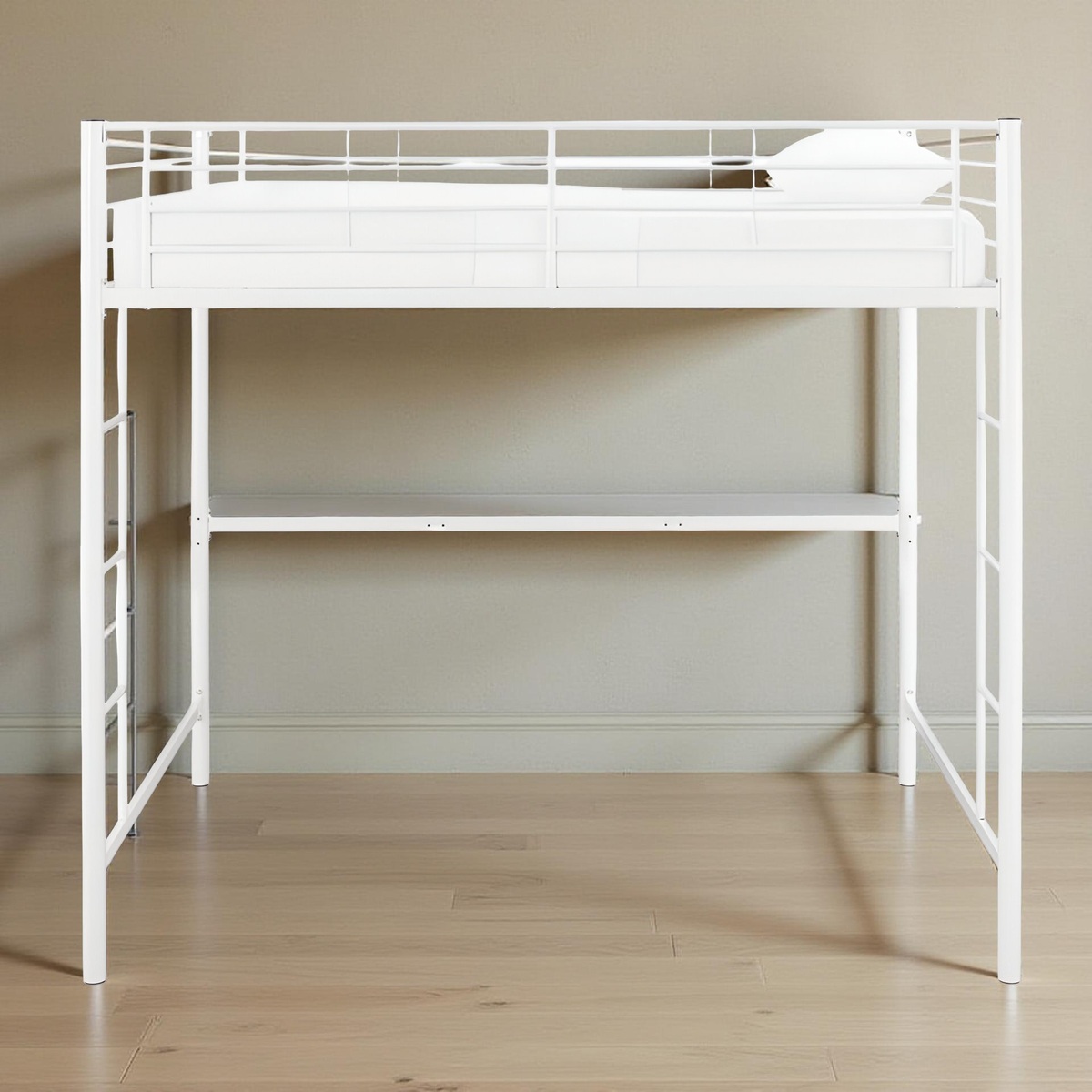 Elevate your child’s room with the clean, modern design of the Elita Full Metal Loft Bed from Isabelle Max. Finished in a bright, versatile white, this loft bed maximizes vertical space—perfect for creating a study nook, play zone, or storage area beneath the raised sleeping platform. Sturdy all-steel construction ensures stability, while the built-in ladder and secure guardrails provide safe and easy access to the top bunk. With its minimalist silhouette and durable build, this loft bed is an ideal solution for both style and functionality in compact bedrooms.
