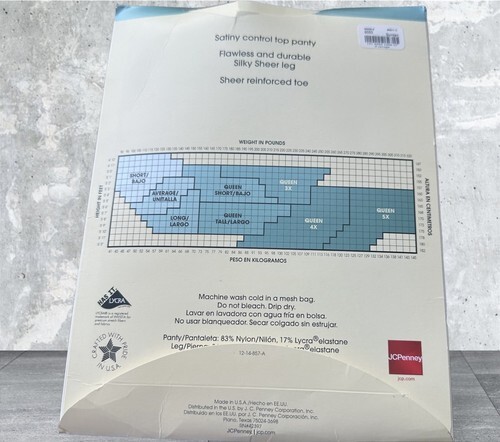East 5th JCPenny Sheer Caress Silky Sheer Suntan Avg Control Top PantyHose NIP. Condition is New with tags. Shipped with USPS Priority Mail.
