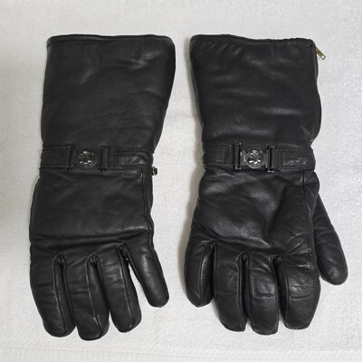 Vintage 90s Arctic Cat Black Leather / Acrylic Lining Snowmobile Gloves Men's XL