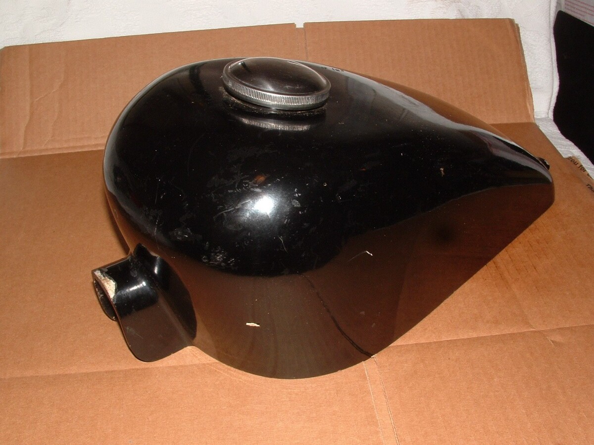 Fiberglass peanut style fuel tank. My guess is 2 gal capacity. Appears it was never mounted or fueled up. Been on the shelf so it has shelf wear/minor scratches/rub marks. $20.00 shipping to lower 48.