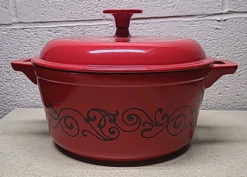 Technique Porcelain Enamel Cast Iron Red French Oven & Lid, Trivet Pot 10”x 5”