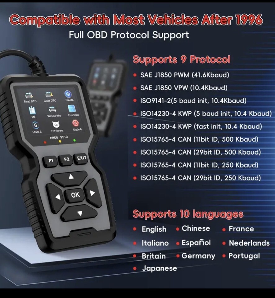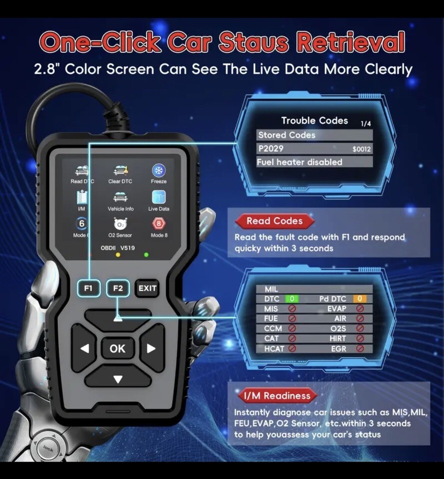 Professional OBD2 Car Scanner Diagnostic Tool. Read and Clear Vehicle Codes.