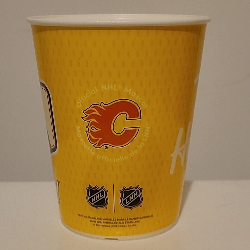 Tim Hortons 2019 NHL Team Mascot Plastic Drinking Cup Calgary Flames Harvey Used