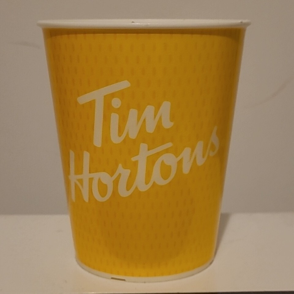 Here is a 2019 plastic drinking cup from Tim Hortons. This is the NHL Mascot cups that they had available. This one is the Calgary Flames mascot, Harvey the Hound. Cup is I'm used shape but still in nice shape. Does have some marks inside the cup from use.