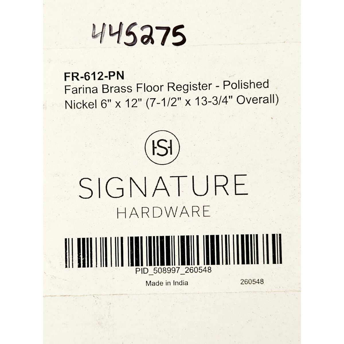 Signature Hardware 445275 Farina Brass Floor Register - 6" x 12" (7-1/2" x 13-3/4" Overall) - Polished Nickel