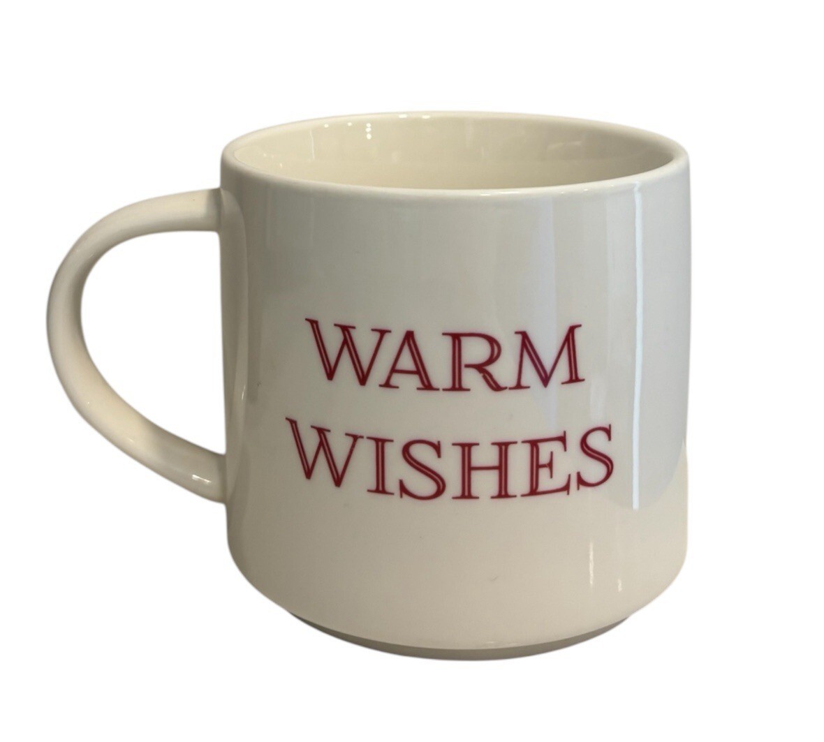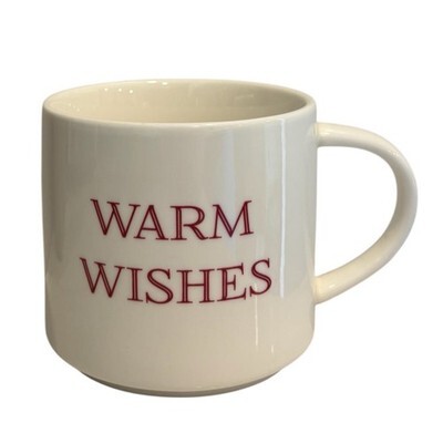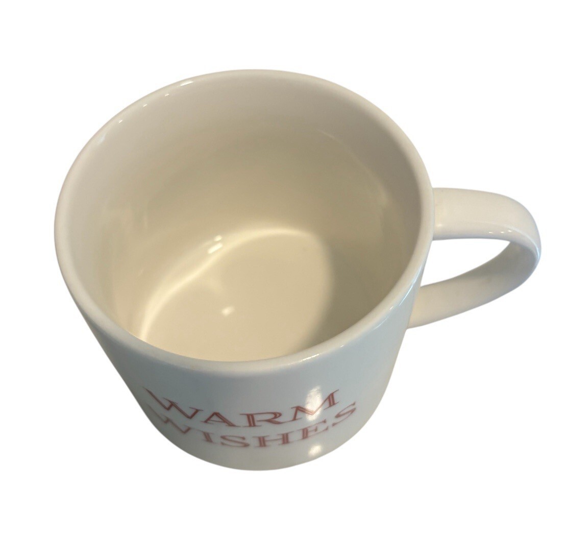 Threshold ivory coffee / tea mug with red lettering. WARM WISHES