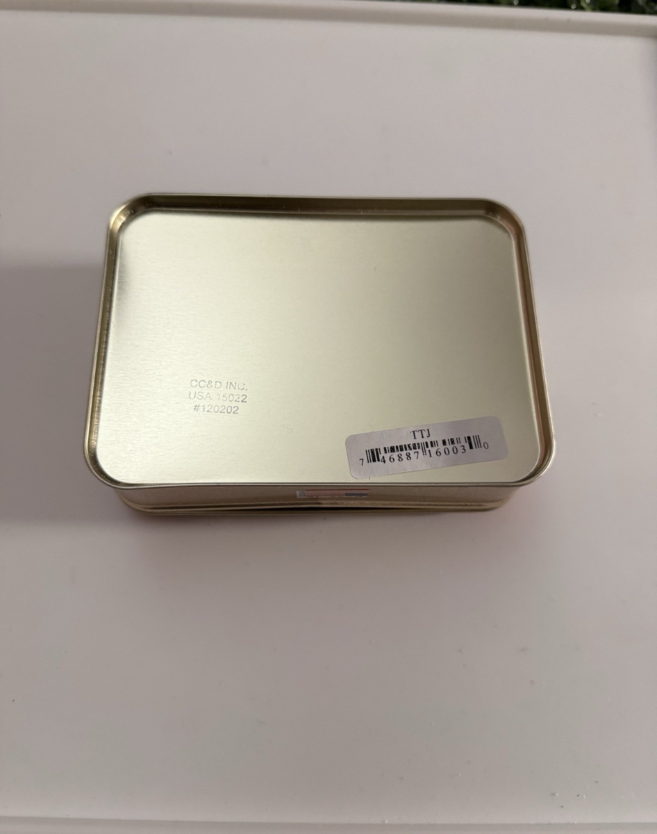 Channel Craft ?Jumbo Jacks? metal jacks game in red, white, and blue tin, made in the USA. Tin originally held 10 classic metal jacks, a 20-page handbook, and 2 rubber balls; this set now includes the tin and 10 metal jacks only (no balls or handbook). The patriotic tin features retro graphics and makes a great nostalgic toy, display piece, or storage box for small items. Perfect for collectors of vintage-style games, Americana decor, or classic kids? toys.