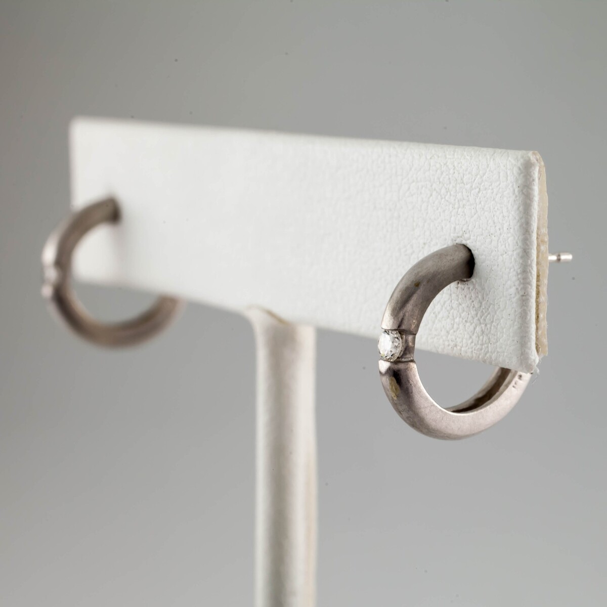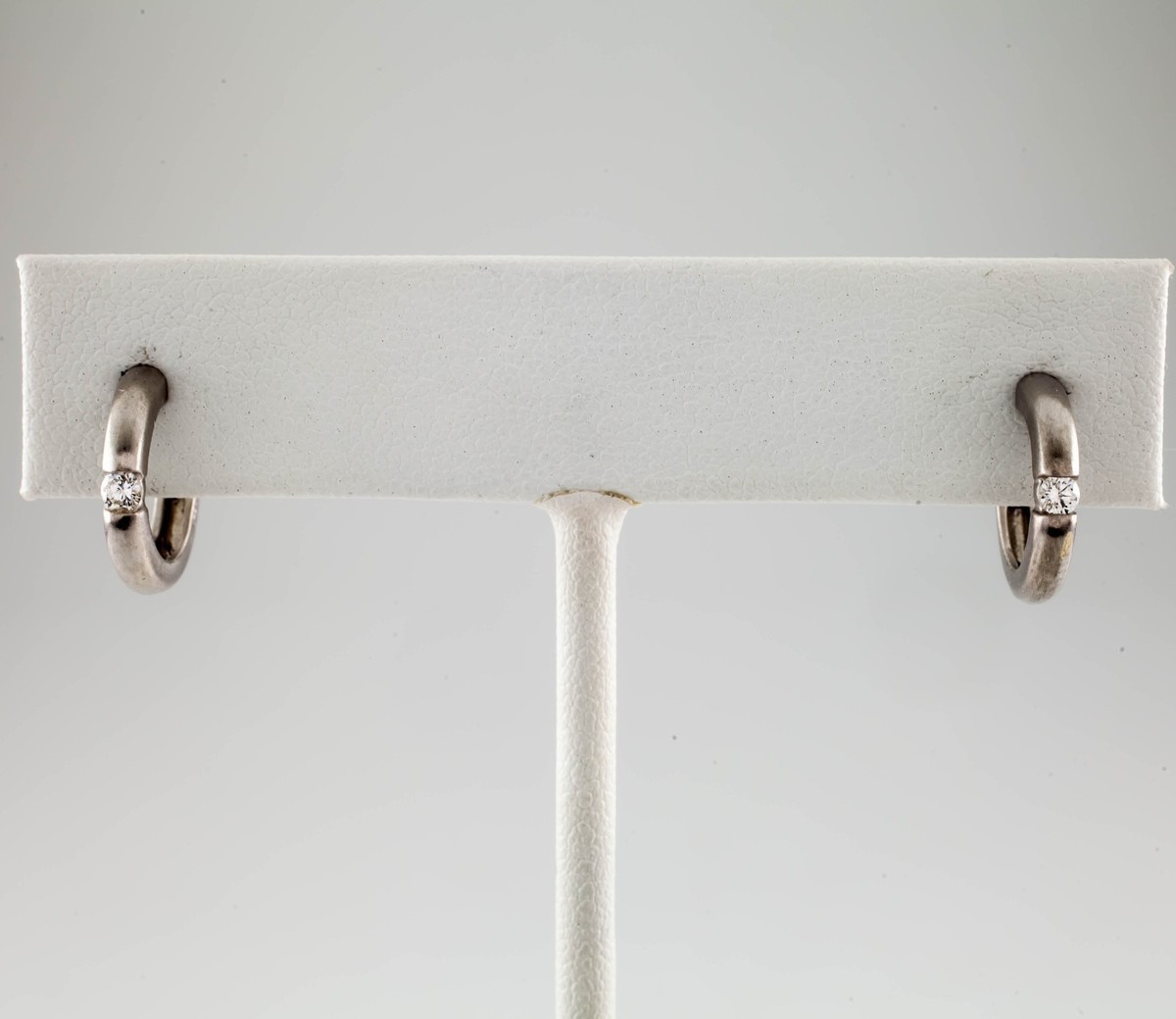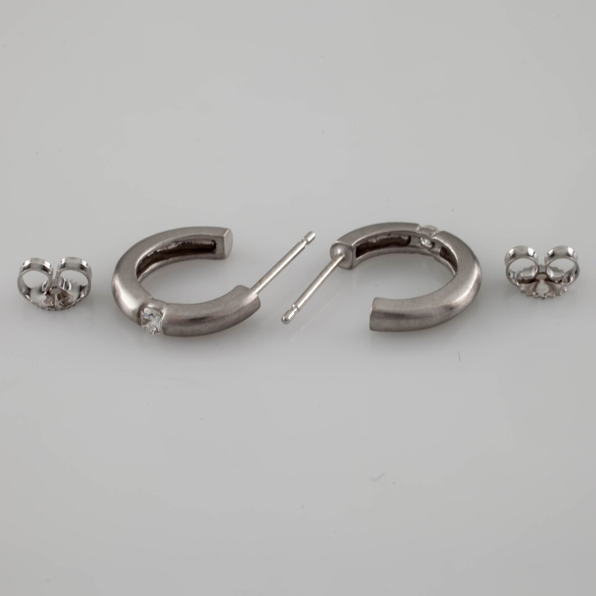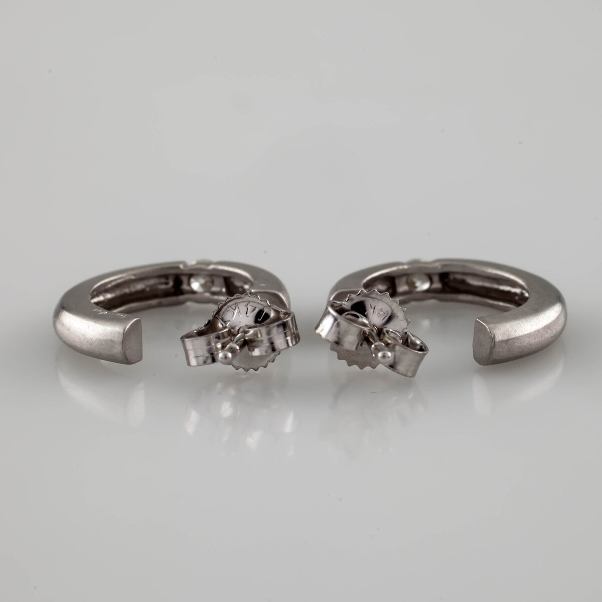 14k White Gold Brushed Hoop Earrings w/ Stud Backs