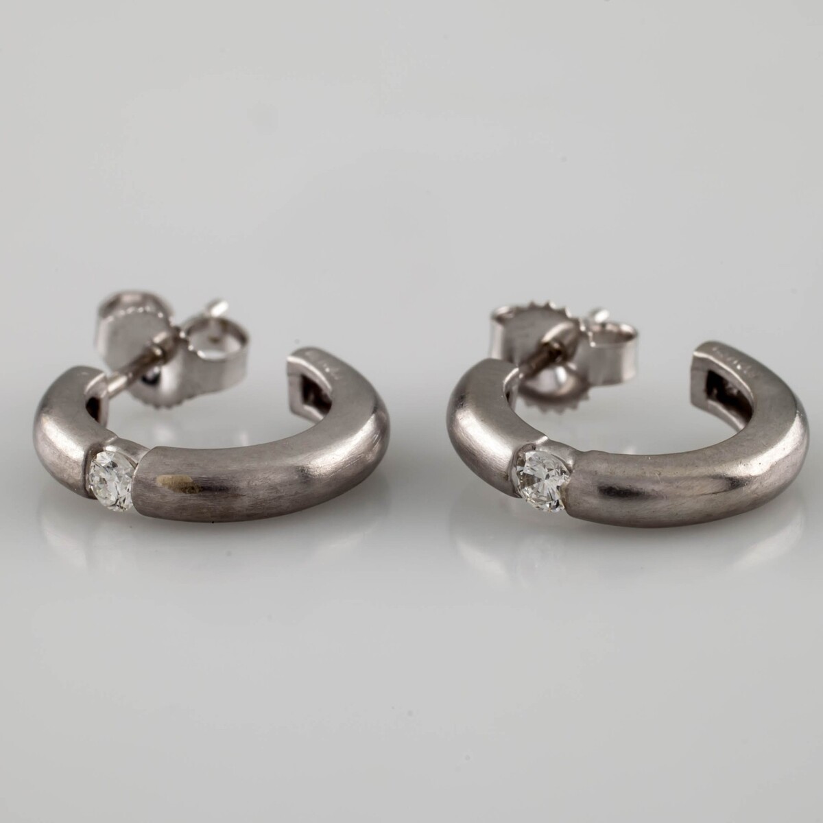Authenticity Guarantee 14k White Gold & Diamond Half Hoop Earrings TDW = 0.1...