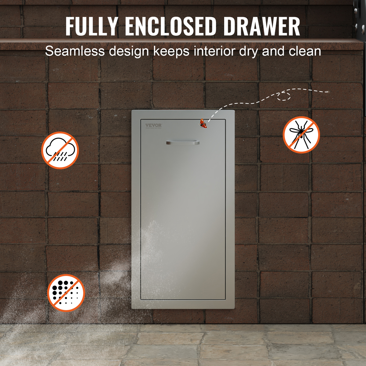 Wide Application: The outdoor storage drawers are perfect for outdoor and indoor kitchens, especially BBQ islands, it can store most kitchen utensils, like dishes, forks, and spoons. Besides, it can be used in any weather condition, even windy or rainy days.