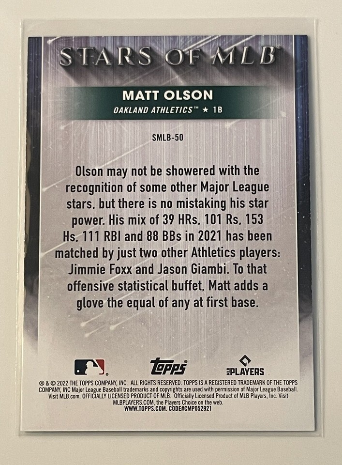 2022 Topps Series 1 Matt Olson #SMLB-50 Stars of MLB - Oakland Athletics/Braves*