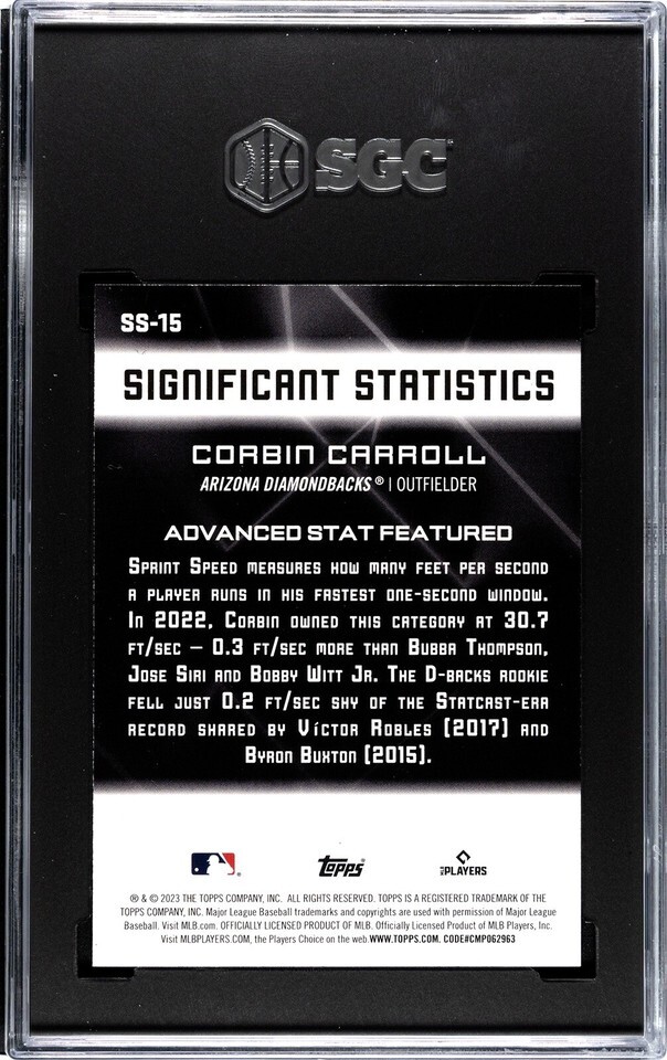 2023 Topps Corbin Carroll #SS-15 Significant Statistics Arizona D-Backs - SGC 10