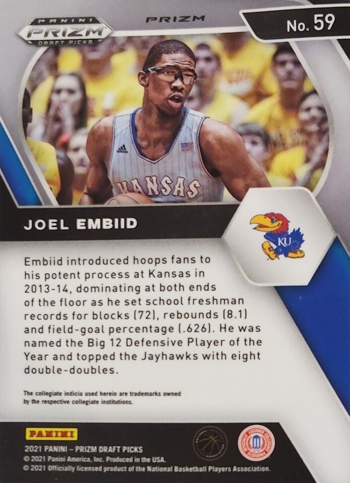 2021-22 Prizm Draft Picks Joel Embiid Red Cracked Ice Prizm #59 Kansas 76ers