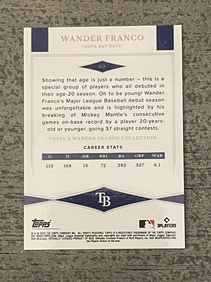 WANDER FRANCO RC 2022 Topps X Wander Franco Collection #60 MLB Tampa Bay Rays.