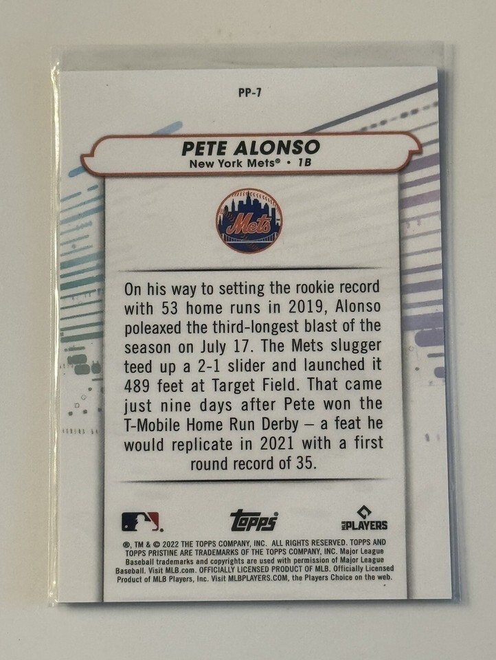 2022 Topps Pristine Pure Power Pete Alonso Refractor Topps Card PP-7 MLB NY Mets
