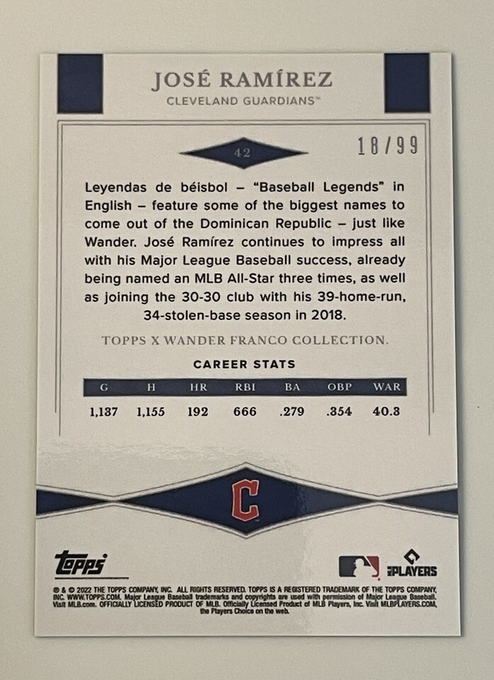 JOSE RAMIREZ 18/99 2022 Topps X Wander Franco Leyendas de Beisbol #42 Guardians