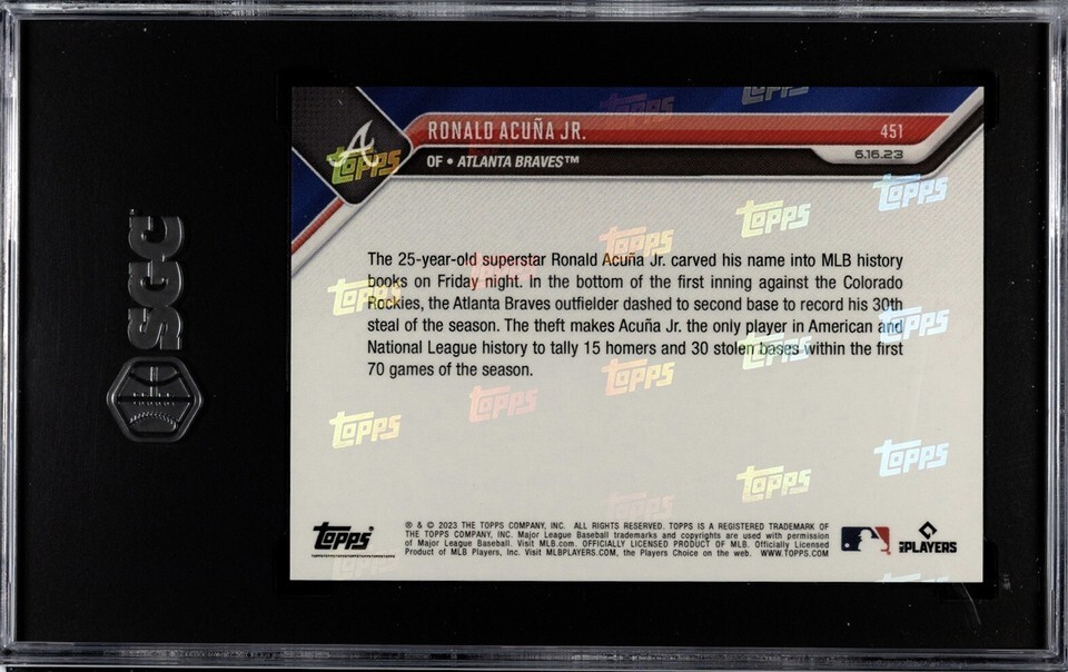 2023 Topps NOW Ronald Acuna Jr * SGC 10 History* 15 HR & 30 SB 1ST 70 Games #451