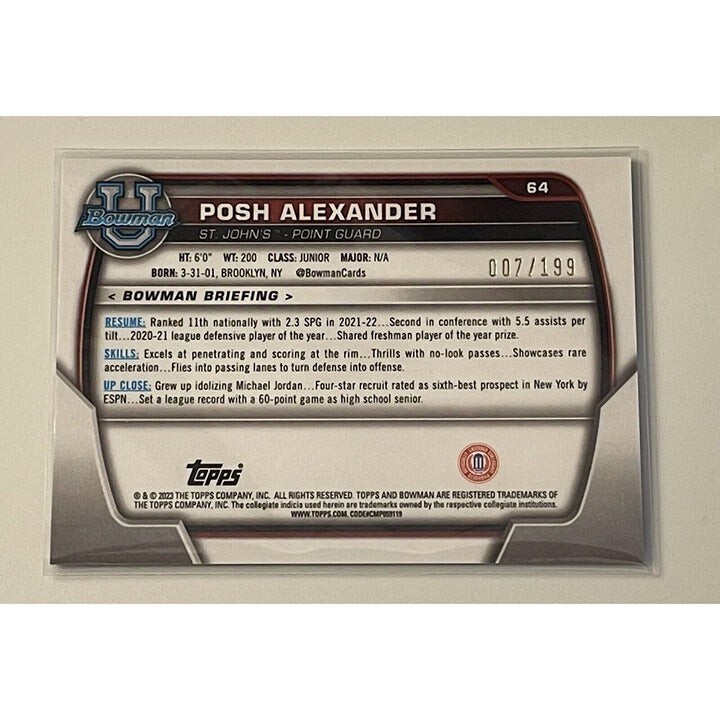 2022-23 Bowman University Chrome POSH ALEXANDER RC 7/199 -1st Purple Shimmer #64