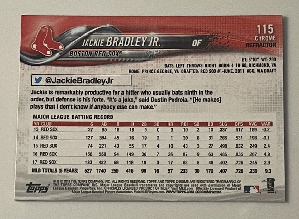2018 Topps Chrome Jackie Bradley Jr #115 Boston REDSOX MLB JUST PULLED MINT!