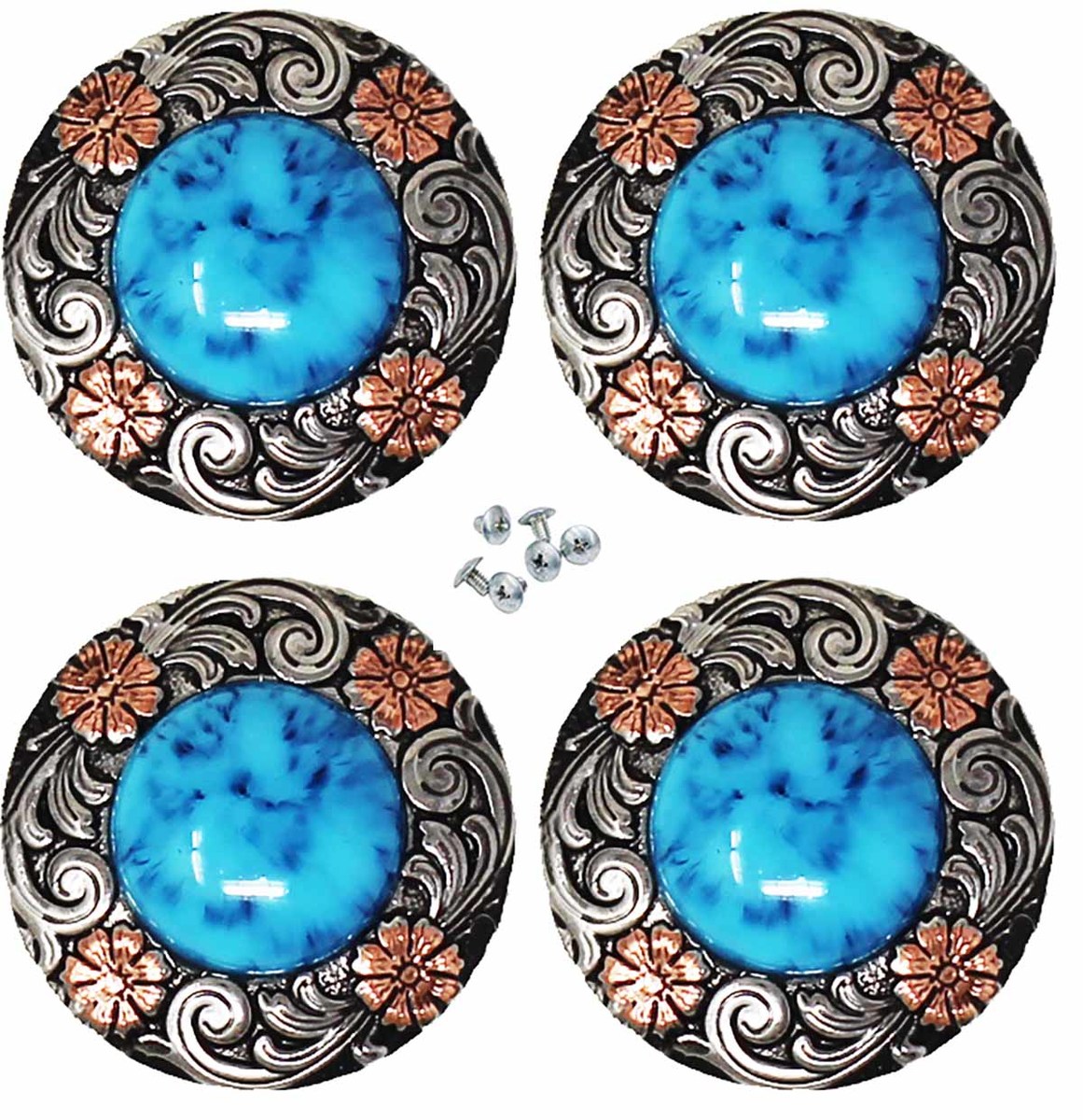 Western Turquoise Stone Concho, Leathercraft Embellishment, Leather Decor, Screw Back (Screws Included) for mounting on Your Belt/Saddle Blanket/Hats/Wallet, Antiqued Silver/Gold, 1-1/4" inch(32mm), Set of 4