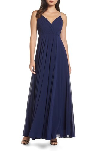 LULUS IDA70941 Surplice Chiffon Gown SZ XS Navy
